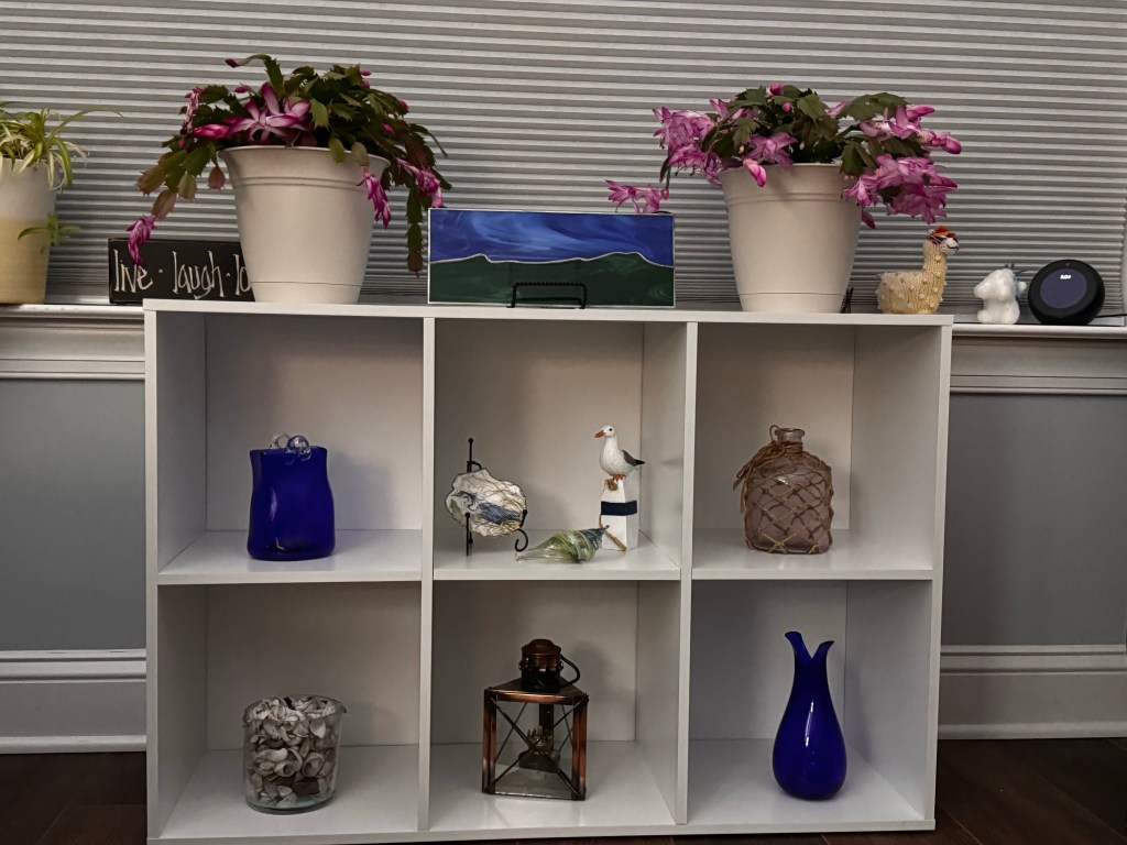 Managed to walk this morning and then it started to rain. It’s rained all day. We needed it. So didn’t have any good photo ops so decided to post picture of my new bookcase in the sunroom