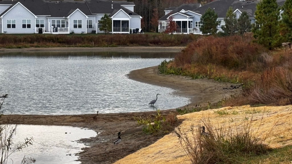 Two different sightings of a heron. Not sure if it was Hank in both locations