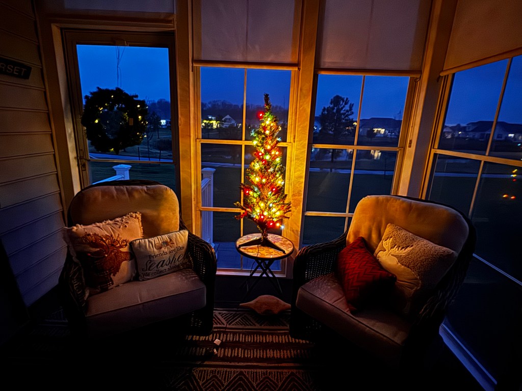 Went out to screened in porch to take a picture of our little tree and I could hear the fog horns