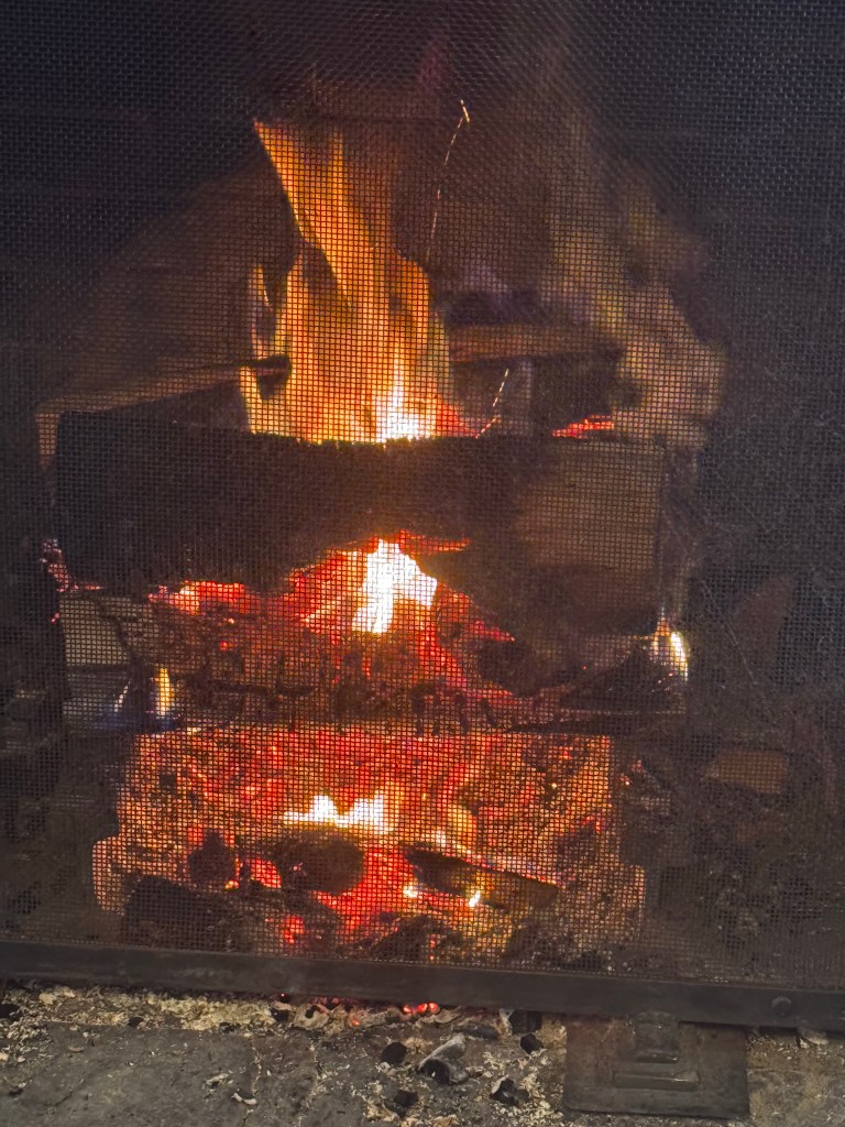 Stopped for some coffee and chai and got back to inn around 3. Propane delivered and waiting on plumber to light all the pilot lights. we are sitting in front of fireplace reading and waiting for happy hour at 4.