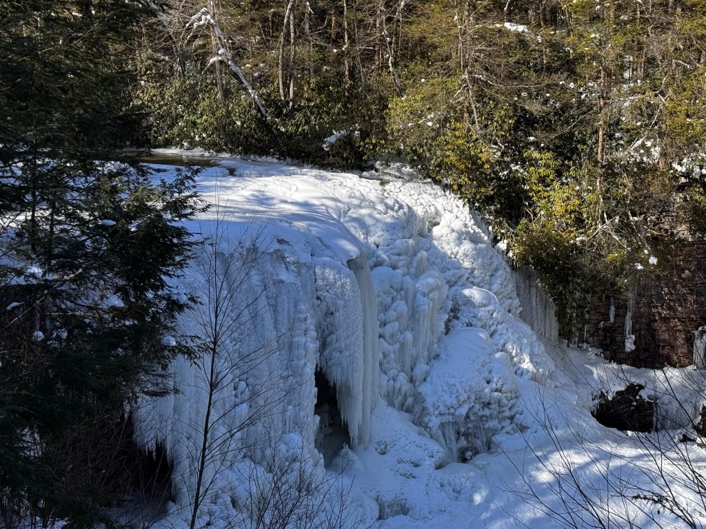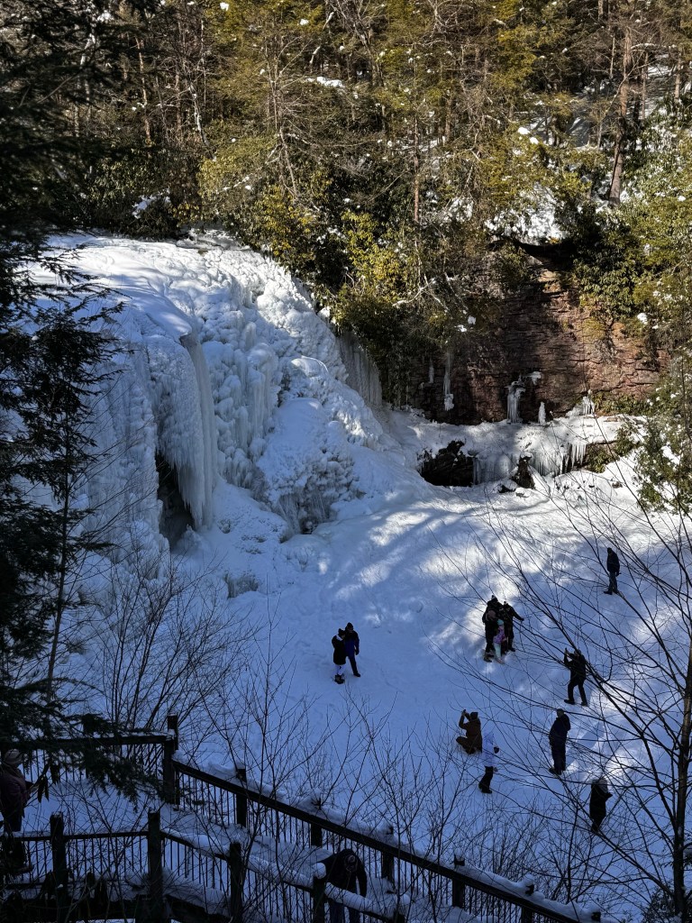 We have been to Swallow Falls numerous times but have never seen the falls this frozen or people walking around the base of the falls.