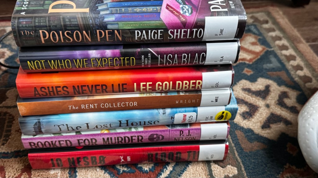 Yoga this morning so I didn’t walk and this afternoon was too busy and no colorful sunset or wildlife so had to think of something to take a photo of. Well I love to read and I just finished a book so have to decide what to read next