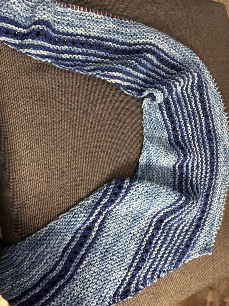 Another beautiful day. Haven’t seen any geese or Hank and tonight’s sunset was not very colorful so what to post. Here’s the latest charity knit I am working on