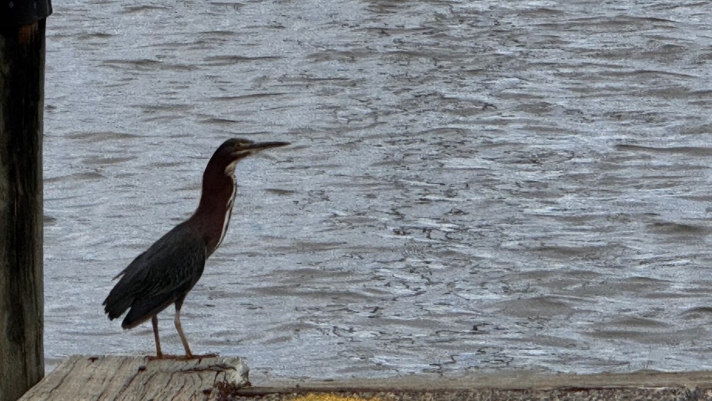 Had to run a bunch of errands and stopped by one of the boat launch sites. Was lucky enough to spot a green heron and a small work boat