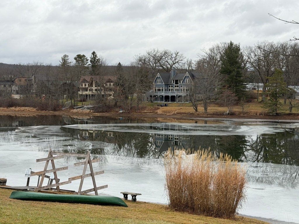 Damp rainy day. Snow is all gone and ice on the cove is melting