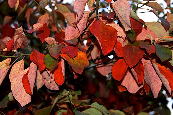 The leaves seem to get more beautiful every day. The reds are my favorites. Took this shot on our evening walk. Before too long it will be dark and we won’t be able to walk in the evenings. Will really miss that. Heard that Tropical Storm Sandy might be headed this way – if that’s the case I better take as many fall photos as I can.