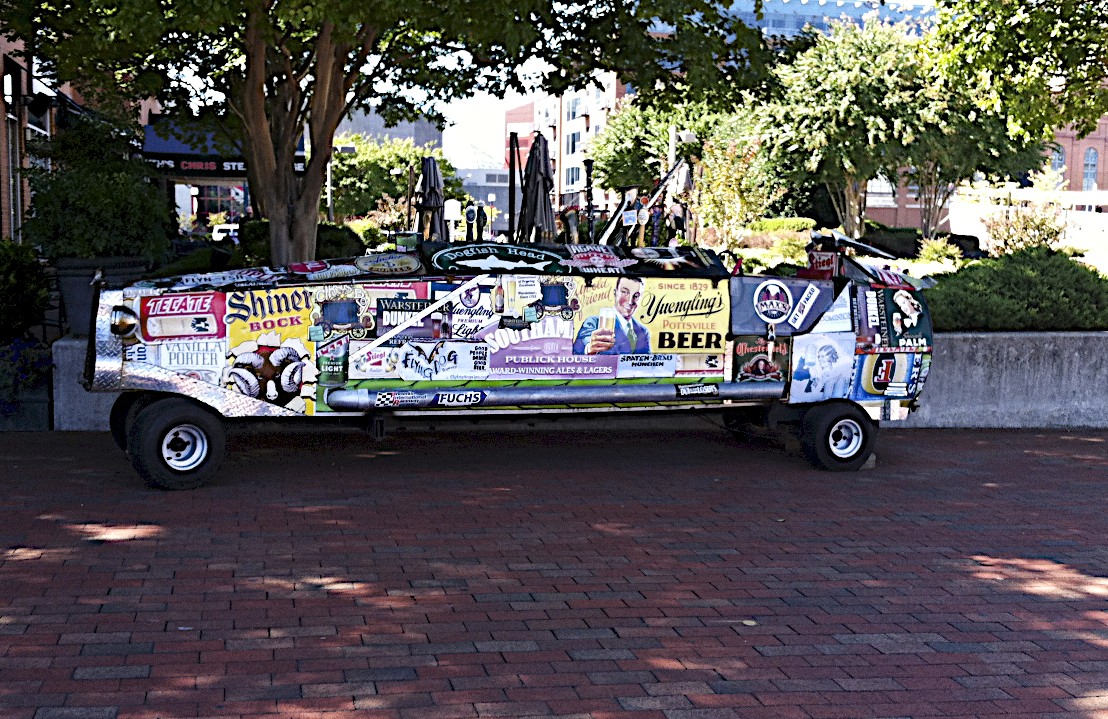We got back from vacation around midnight on Friday night. Had a great vacation but I lost my small point and shoot camera somewhere along the way Better that camera than one of my Nikons. It’s been hard to get back in the groove taking pictures at home after such spectacular scenery in Wyoming and Utah. Since it was such a beautiful day, went for a long walk lunchtime. Came across this strange vehicle near the Inner Harbor. It had a row of beer taps in the middle but also some musical instruments like a clarinet and saxophone. Strange combo. There was no one nearby so I couldn’t ask