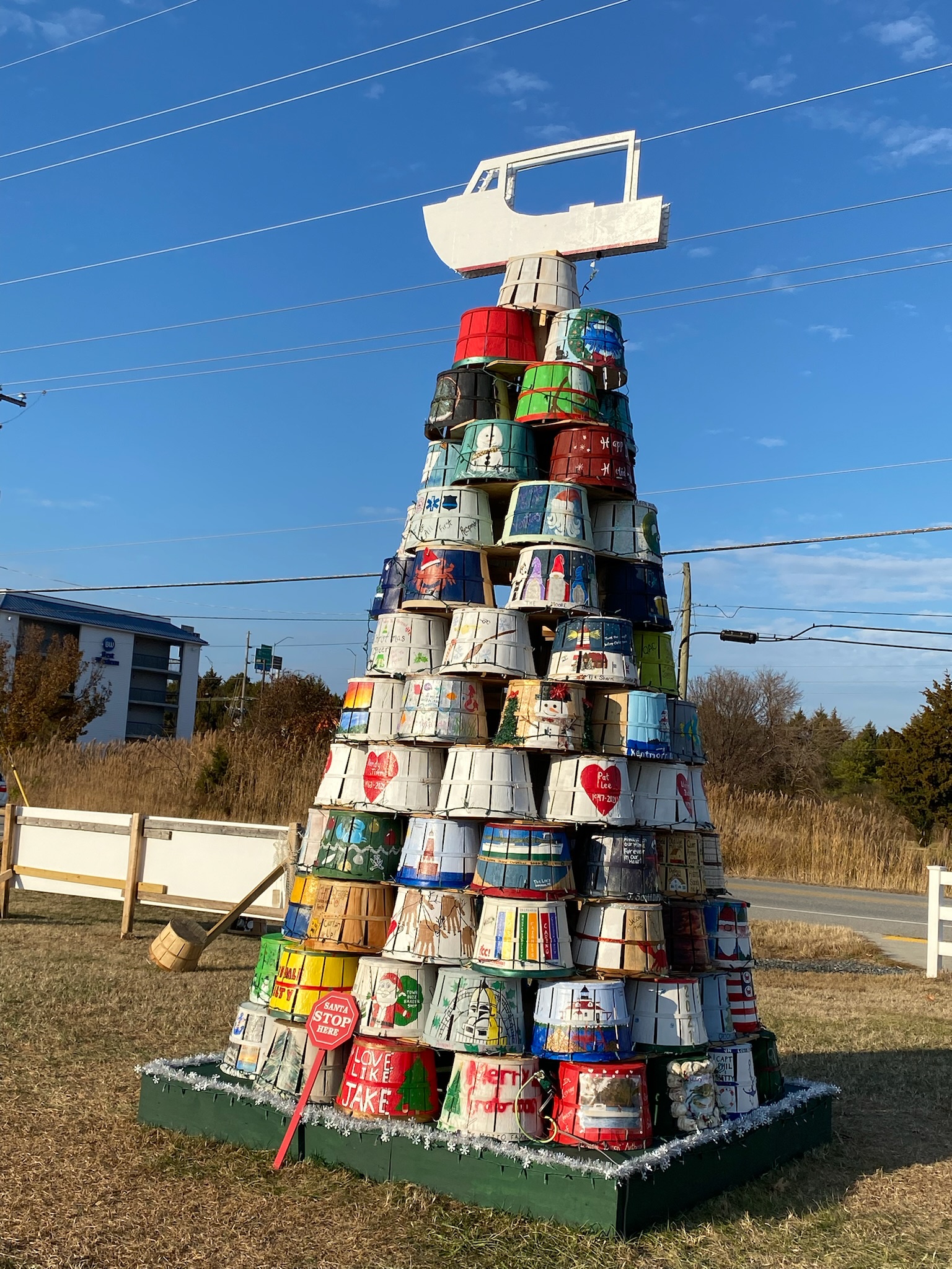 The crab basket tree benefit’s the local Watermen’s Association. Local businesses and interested people purchase a crab basket from the QA Watermen’s Association and paint a nautical or holiday theme.