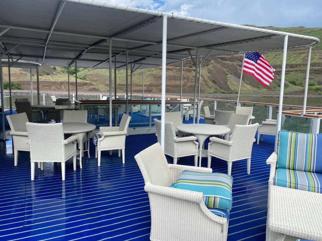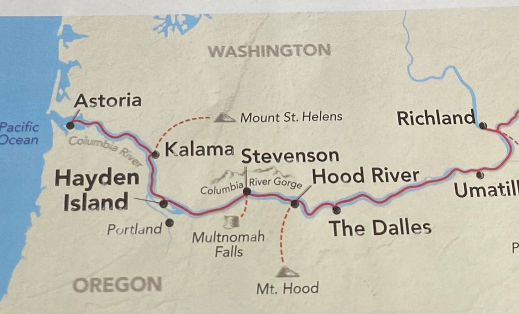 We are on a river cruise on Columbia and snake rivers. Picture of our ship. There are only around 130 people on the cruise