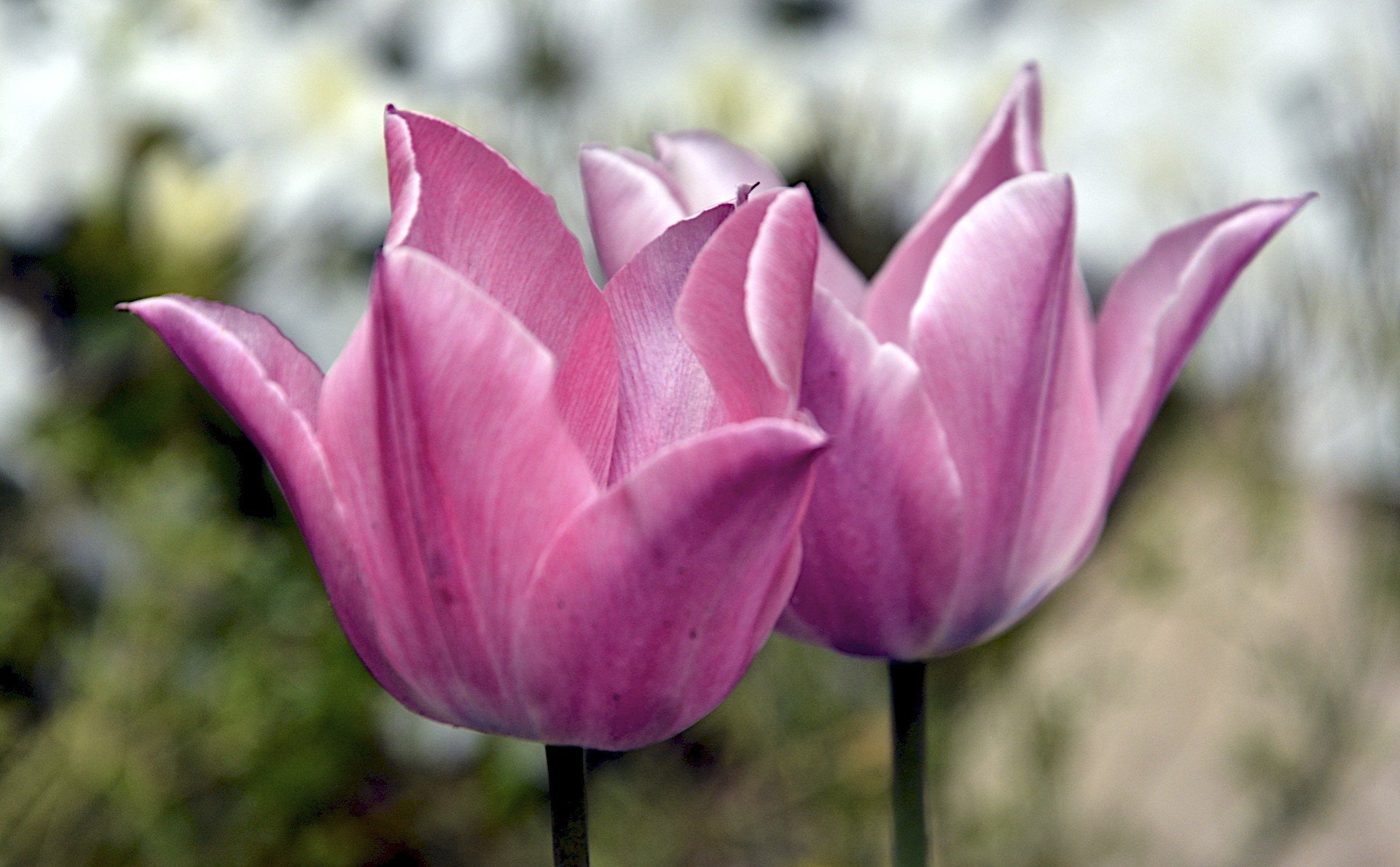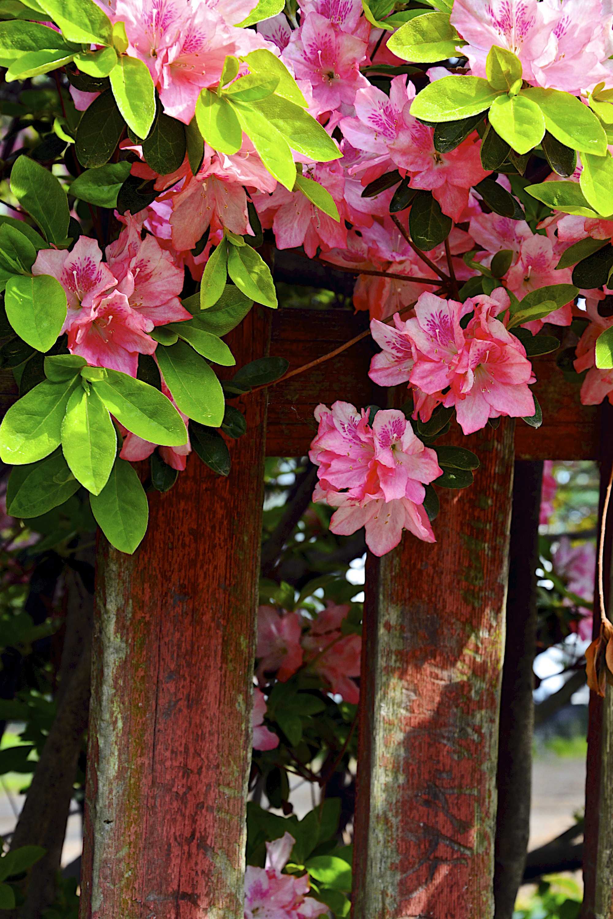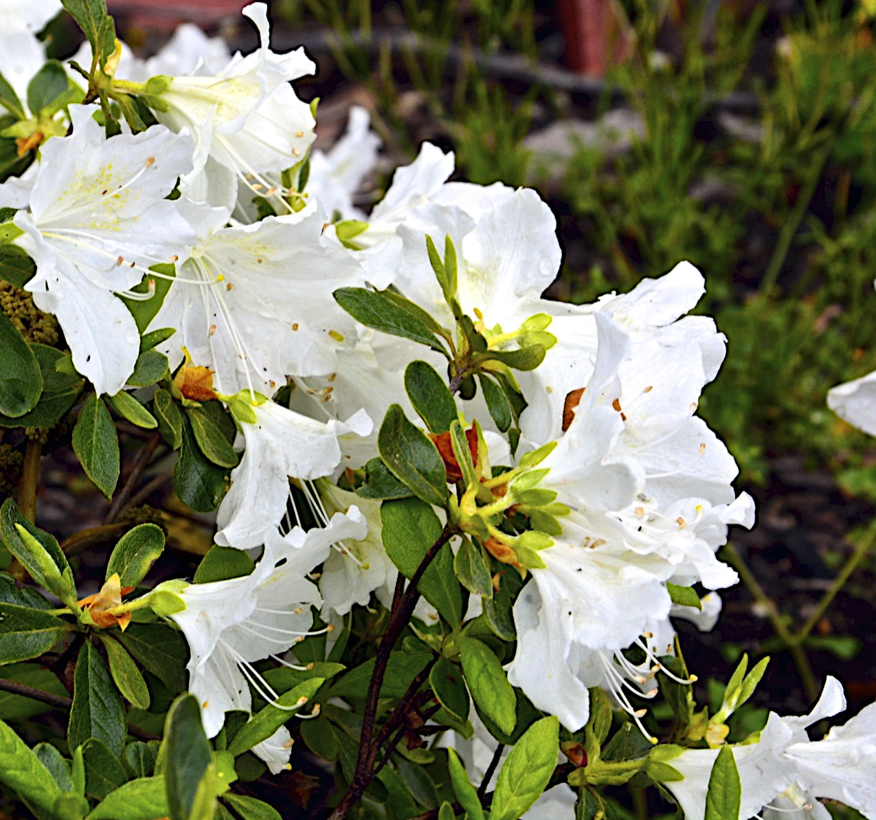 Since we were out having fun on Friday and Saturday, had to run errands and do some chores around the house today. So, I headed to the backyard to see if I could find anything to catch my eye. Was surprised to see that the two tulips were still in bloom and that the white azalea bush behind it was in full bloom. Thought the bush might be a good background against the pink tulips. Really like how the picture turned out – seems to have a soft dreamy feel to it.