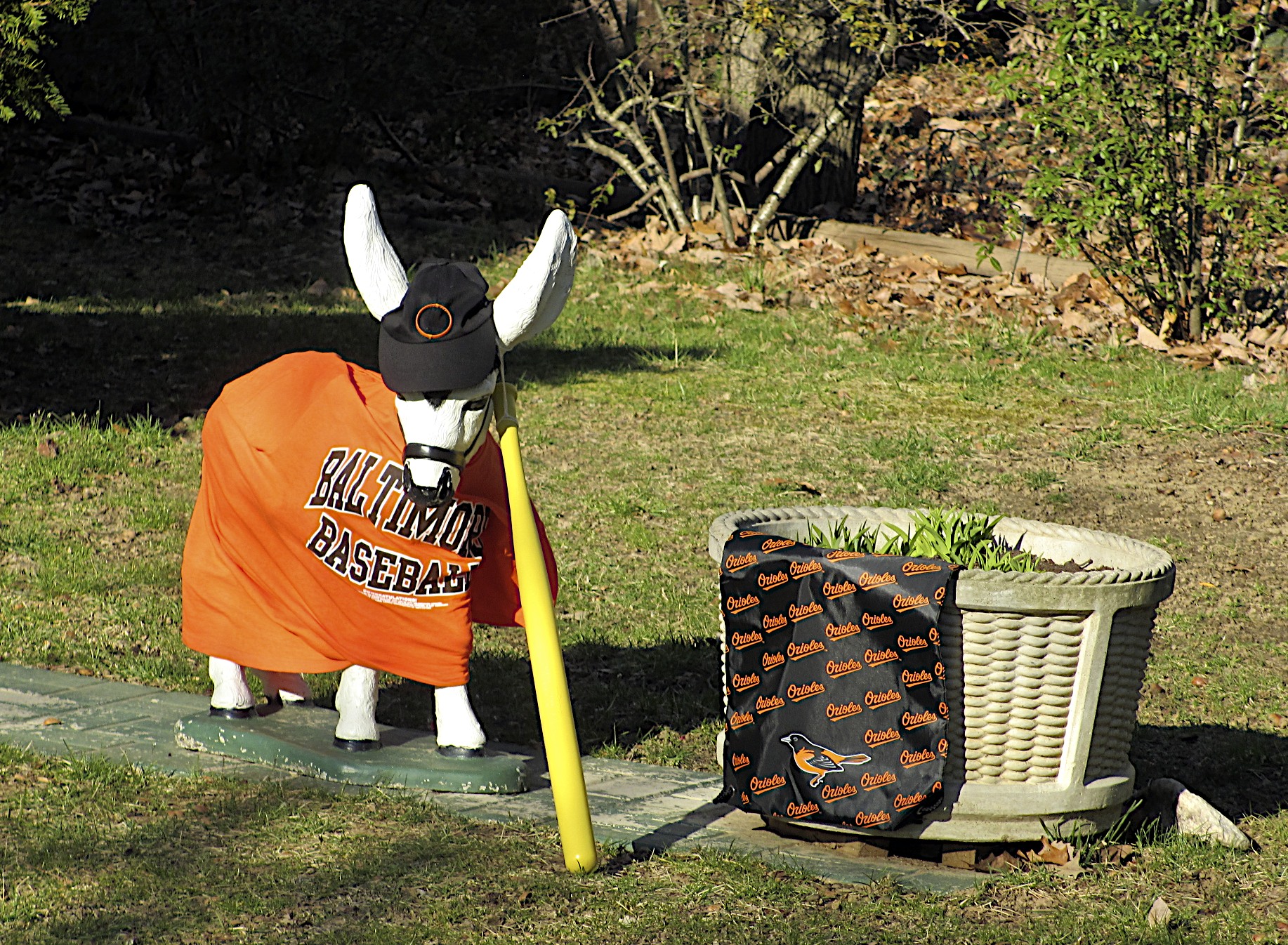 Back to work today after a long relaxing weekend. When I got to work, I discovered that my big client wanted changes made to the big project I worked on a couple of weeks ago and they wanted it today. So had to hit the ground running – worked thru lunch and stayed late – so no time for photo ops. When I got home I noticed the neighbor had decorated his donkey for opening day. Since it was late and I am really tired, decided to use this for my photo of the day even though I am a NY Yankee fan – i grew up in New York and once a Yankee fan – always a Yankee fan.