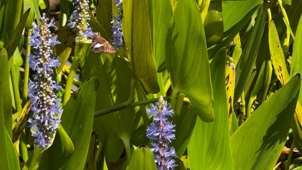 Spotted these pretty flowers around the pond. There was the smallest butterfly I have ever seen on one of leaves on top left
