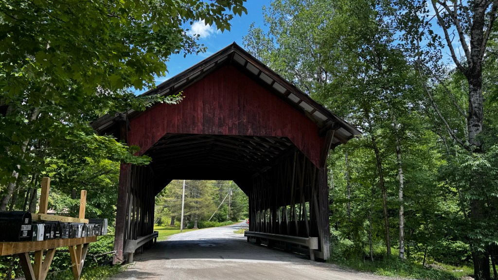 It was a little damp and rainy but we ventured out. First stop covered bridge by the path