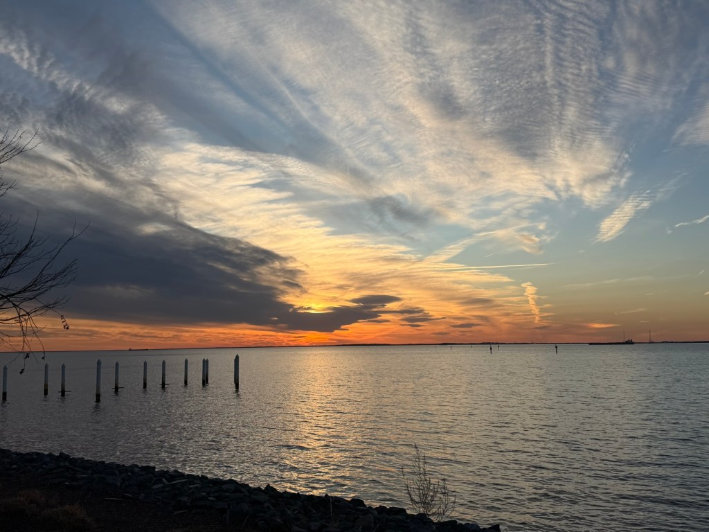 Went out to dinner for a belated birthday for my husband. Sunset over the bay
