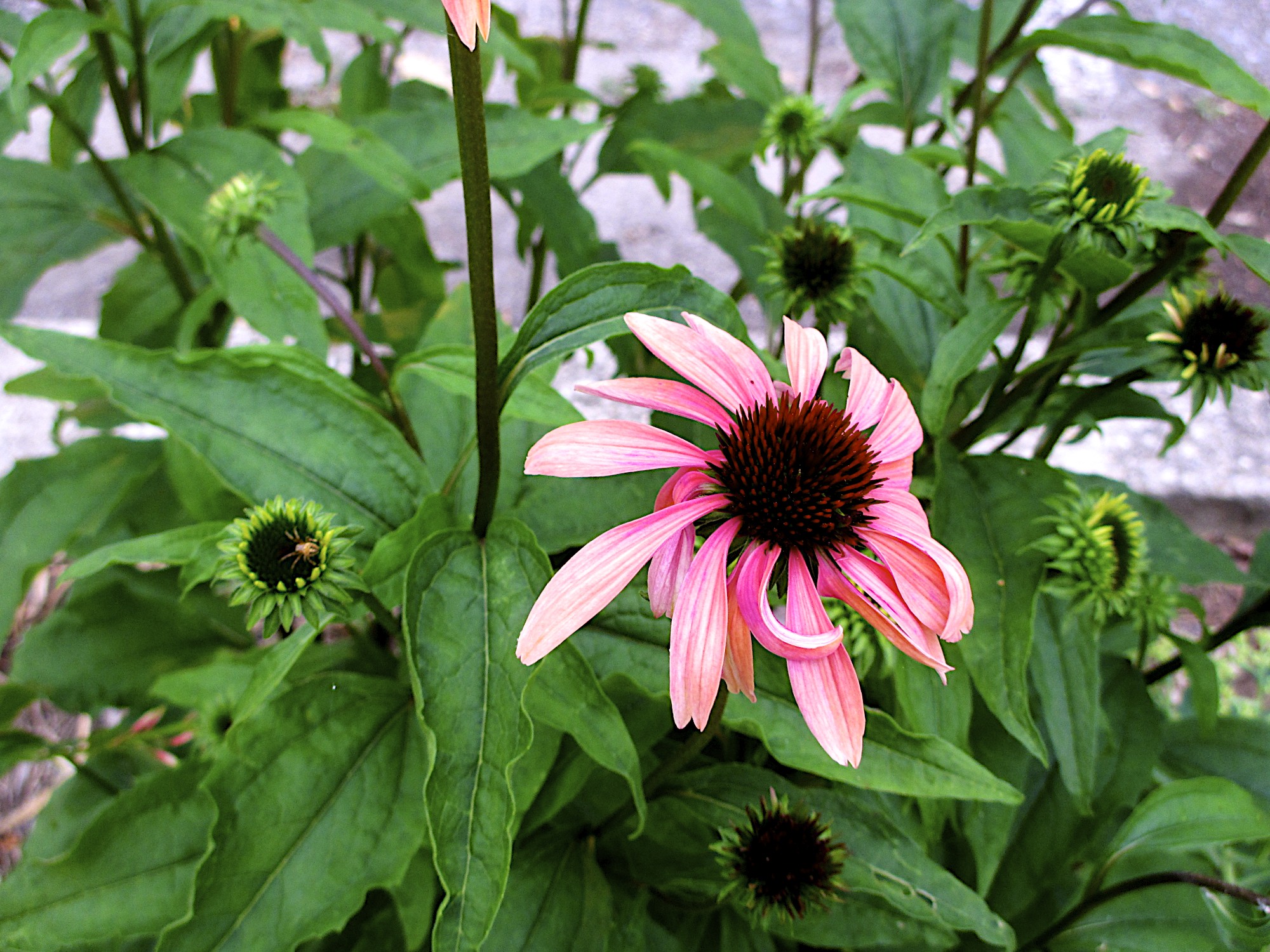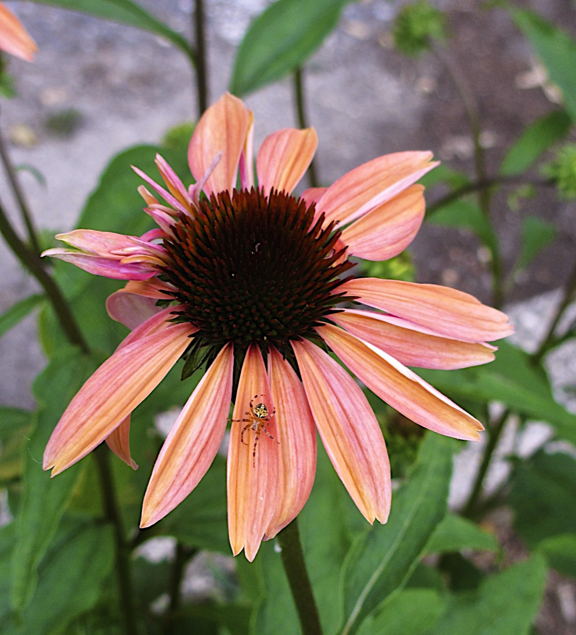 As I was driving out of the library parking lot I spotted these coneflowers. At least I think that’s what they are. Since I had never seen any this color I had to stop and take some photos, When I got closer I noticed the spider. Only had my point and shoot camera with me and wasn’t sure how clear the spider would show up.