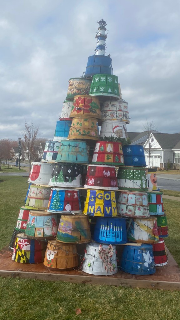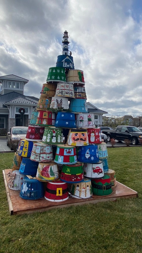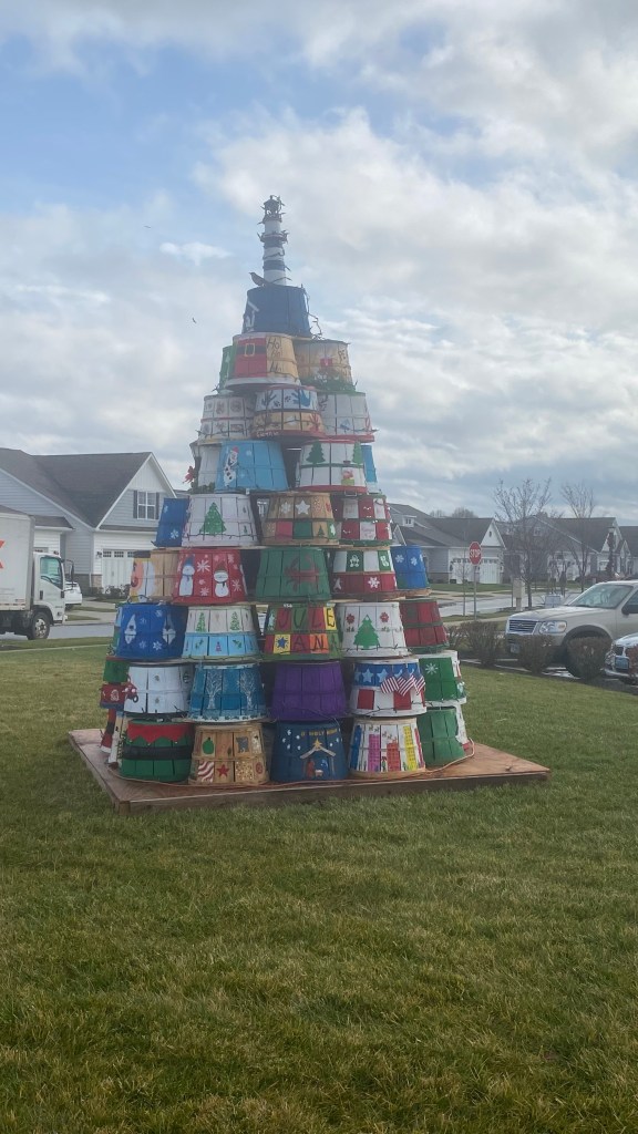 Our second crab basket Christmas tree. This one has two extra rows and there are 64 baskets and it’s lite up at night. Lots of talented people and volunteers in our awesome community. Proceeds are donated to the local watermen’s association