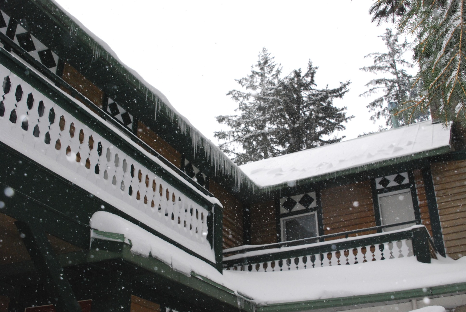 Another picture from last weekend. This is a partial view of the Lakepointe Inn at Deep Creek. We usually stay in the room on the second floor on the left. I tried numerous times last weekend to capture a close up of a snow flake but no success. However, I did get a picture of it snowing.