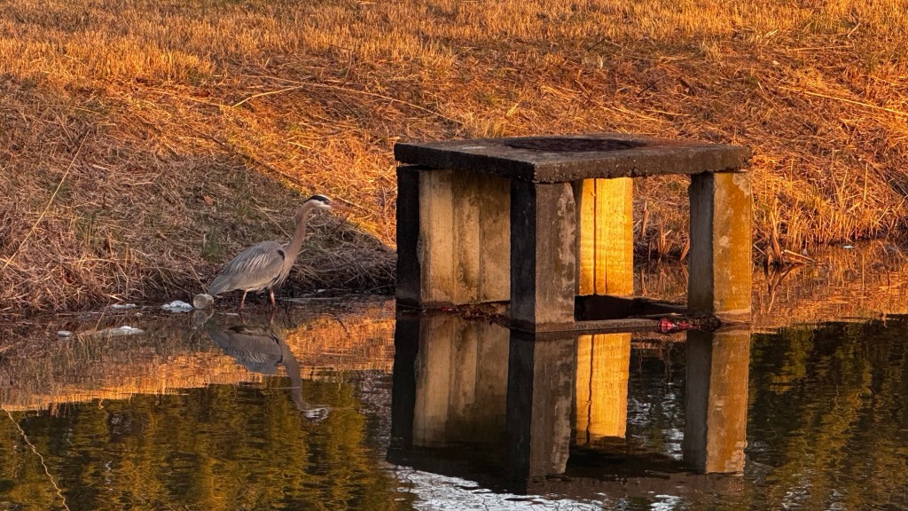I went to get some Girl Scout cookies and was lucky to spot a heron and a deer