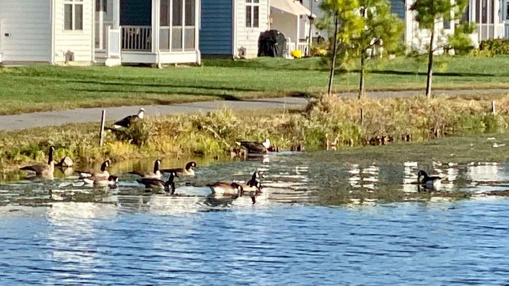 Spotted all these geese at the pond in neighborhood across from us