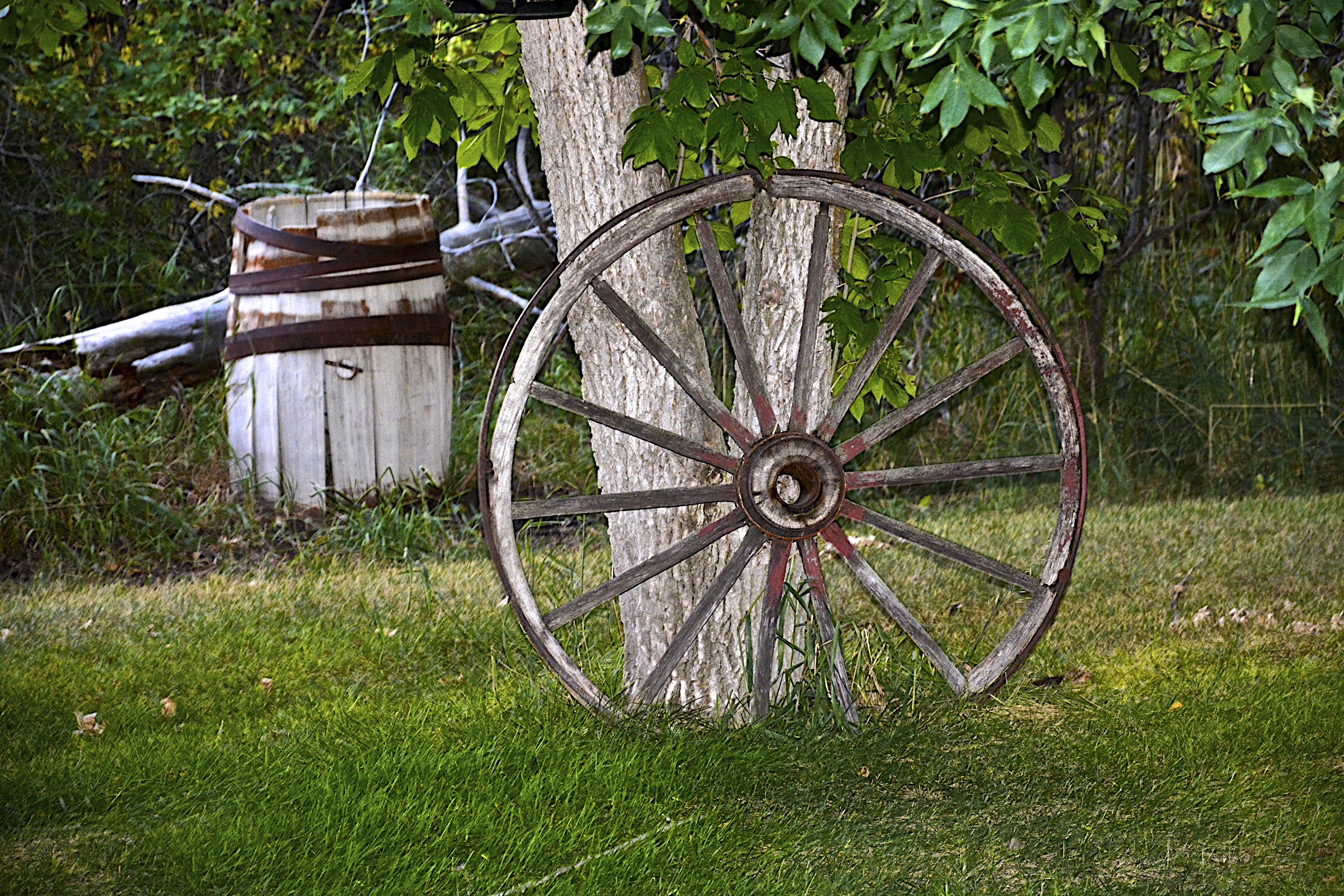 September 9, 2013 Posted on September 9, 2013 by lynmicphoto Reply Lin and Michael’s Photos Took this in the backyard of Fox Hollow. The owner told us that he found this wagon wheel in the yard and it was used by pioneers
