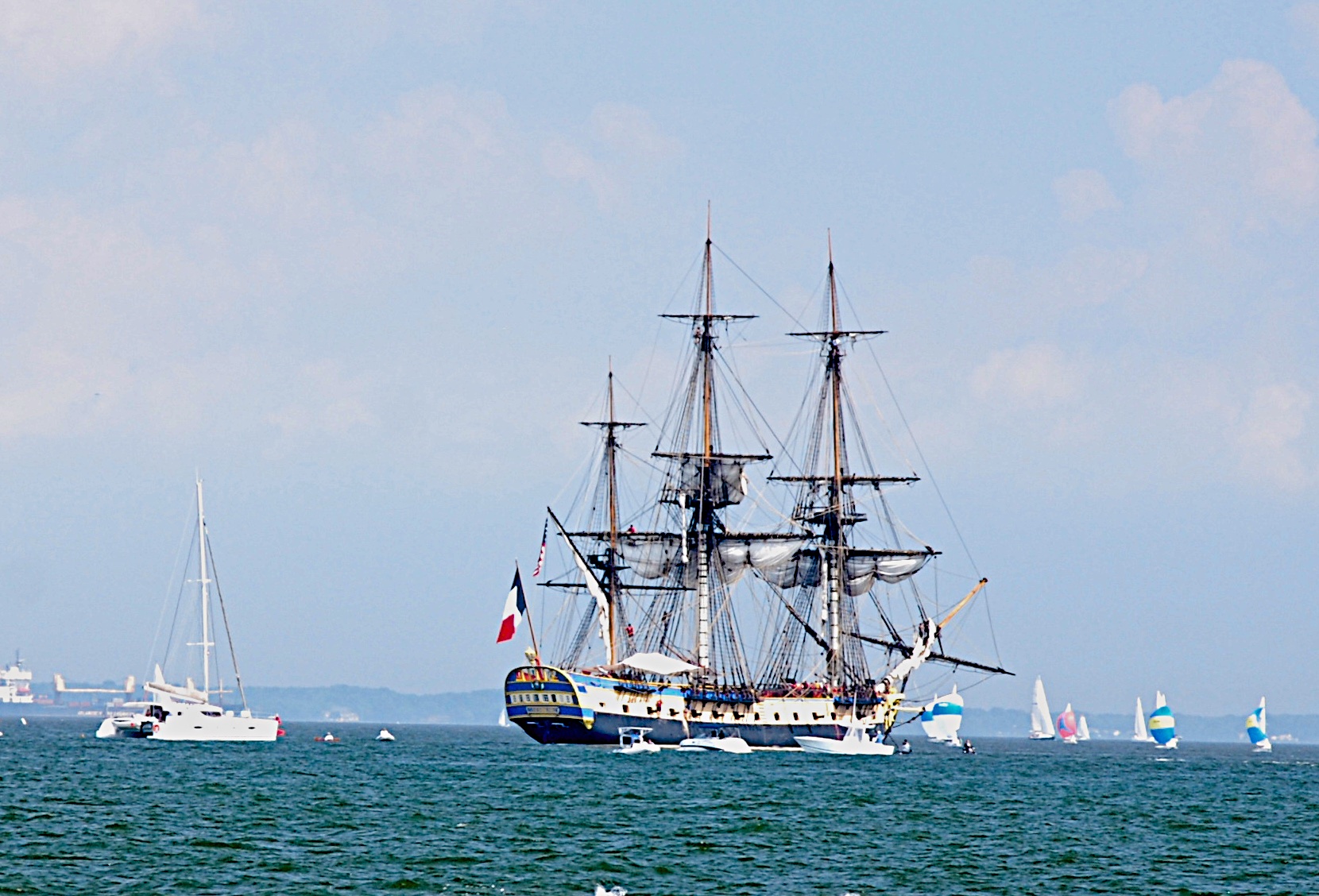 The Hermione replicates the original wartime frigate that ferried the Marquis de Lafayette to America in 1780. The French spent 17 years and $28 million replicating the Hermione down to the last detail. Today it is sitting just outside Annapolis Harbor and we were lucky enough to get this shot.