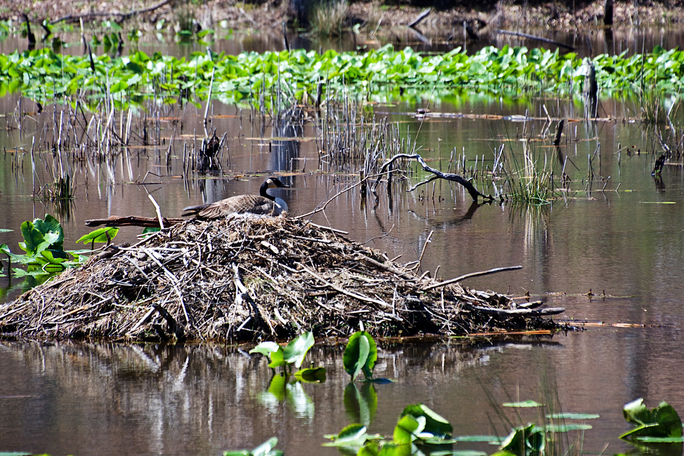 High and dry.  Spotted this goose sitting on top of a beaver hut