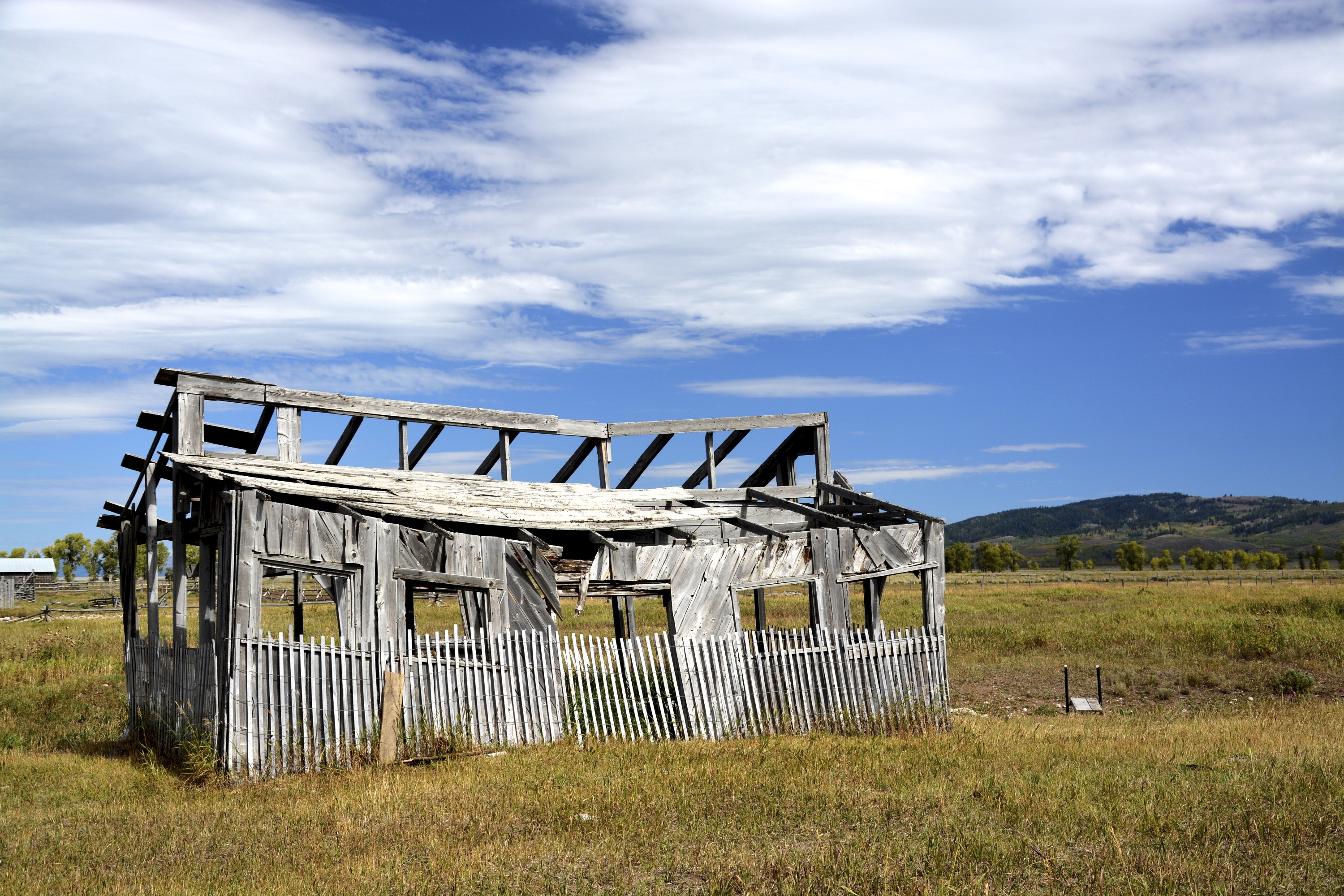 We decided to head back out to Mormon Row this morning. Since it was just the two of us we had time to explore and take lots of pictures. The farmland here was homesteaded by predominantly Mormon settlers in the early 1900’s but was later transferred to the Park Service. Only one set of buildings – an acre of the Moulton Ranch – is still in private hands. The other buildings were allowed to decay until the 1990’s when the Park Service stepped in to preserve the structures
