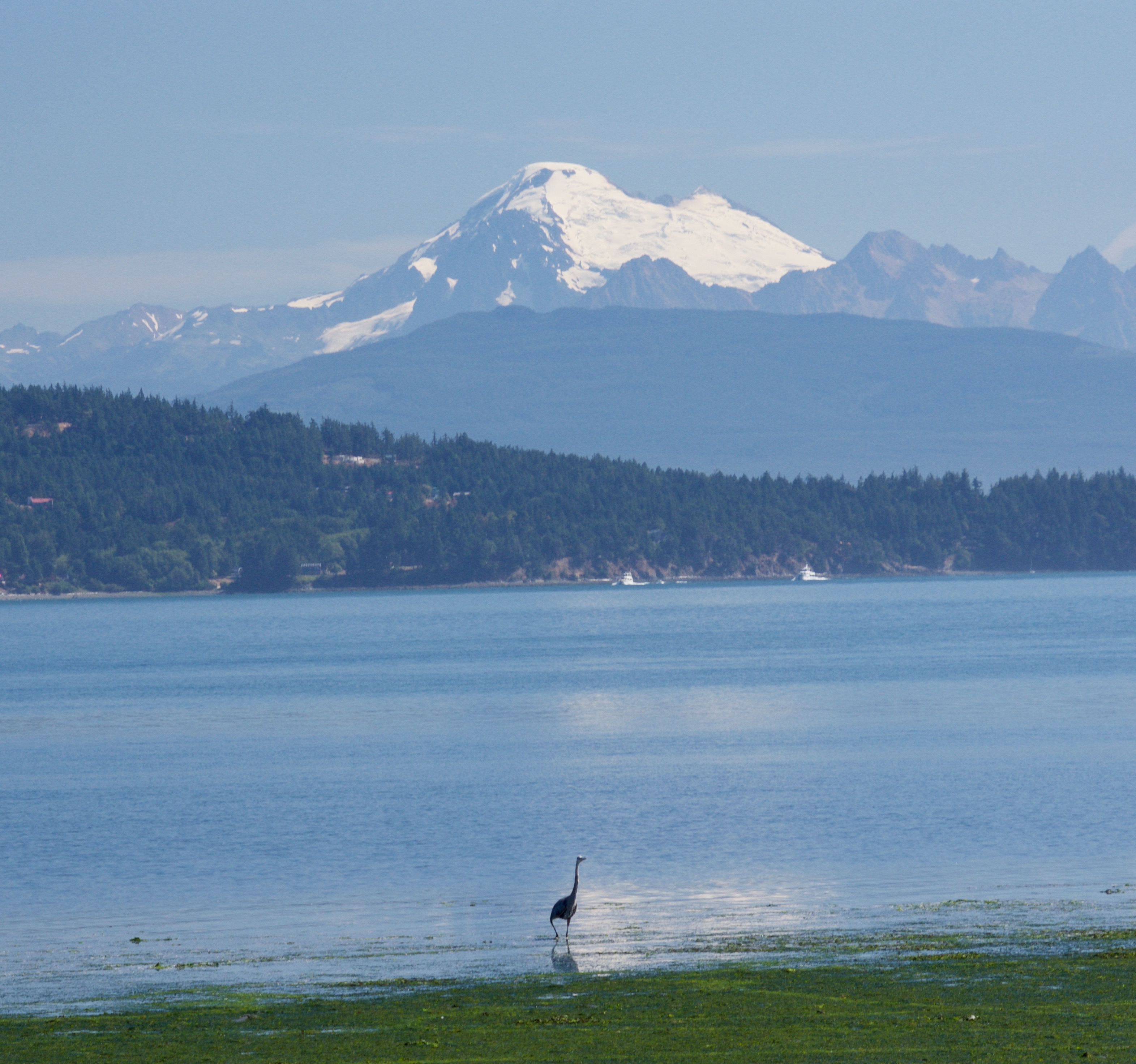 We decided to go on an Orca Whale Watching Tour with Aaron Photos. We met up with our tour group (5 other people plus Aaron) this morning and headed to Anacondas to catch the ferry. While we were waiting for the ferry we spotted this blue heron and he was kind enough to pose in front of Mt. Baker