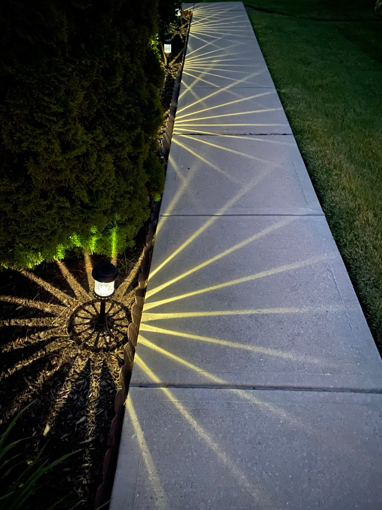 Got busy and forgot to check the sky for tonight’s sunset. Heard fireworks and went outside to check. No fireworks but as I was walking back in the house noticed patterns on sidewalk
