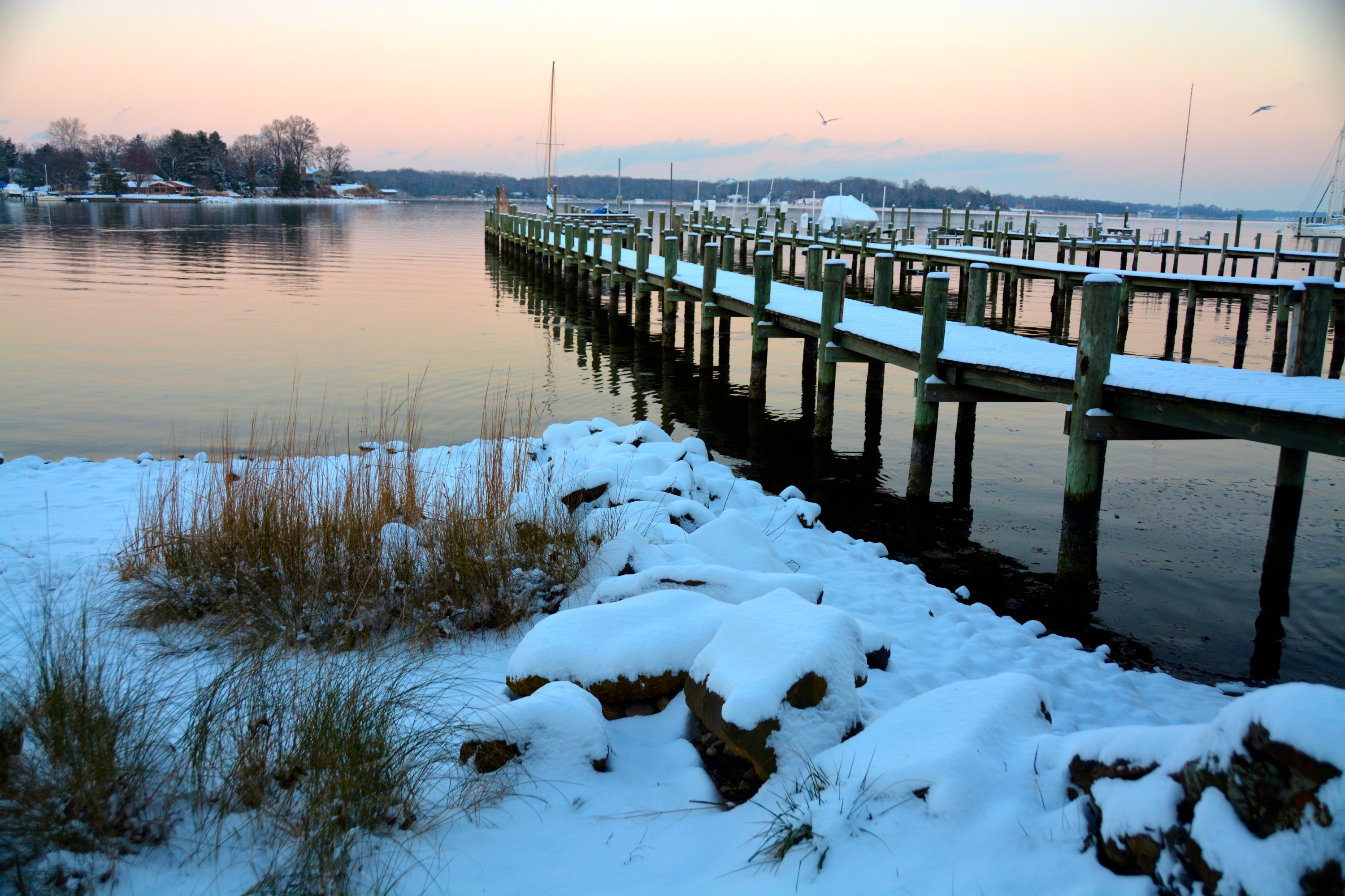 We finally got some snow – only about 3 inches but it was a Winter Wonderland. Stopped at the marina after work and took a bunch of pictures – hard to decide which ones I liked the best. Liked the colors in this one and was happy to see I managed to capture two seagulls