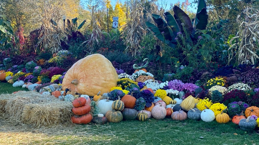 The sun came out and it was a beautiful day Stopped at Saratoga Spa state park. We were happy to see that the rain and wind did not knock down all the leaves The park is 2.379 acres and it contains lots of trails, the performing arts center, picnic ares and lots of other amenities. There is a beautiful fall display at the entrance to the park. I was lucky enough to talk to one of the state employees who told me that her and her boss start working on the display in mid September. This is just part of the beautiful display