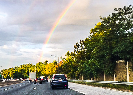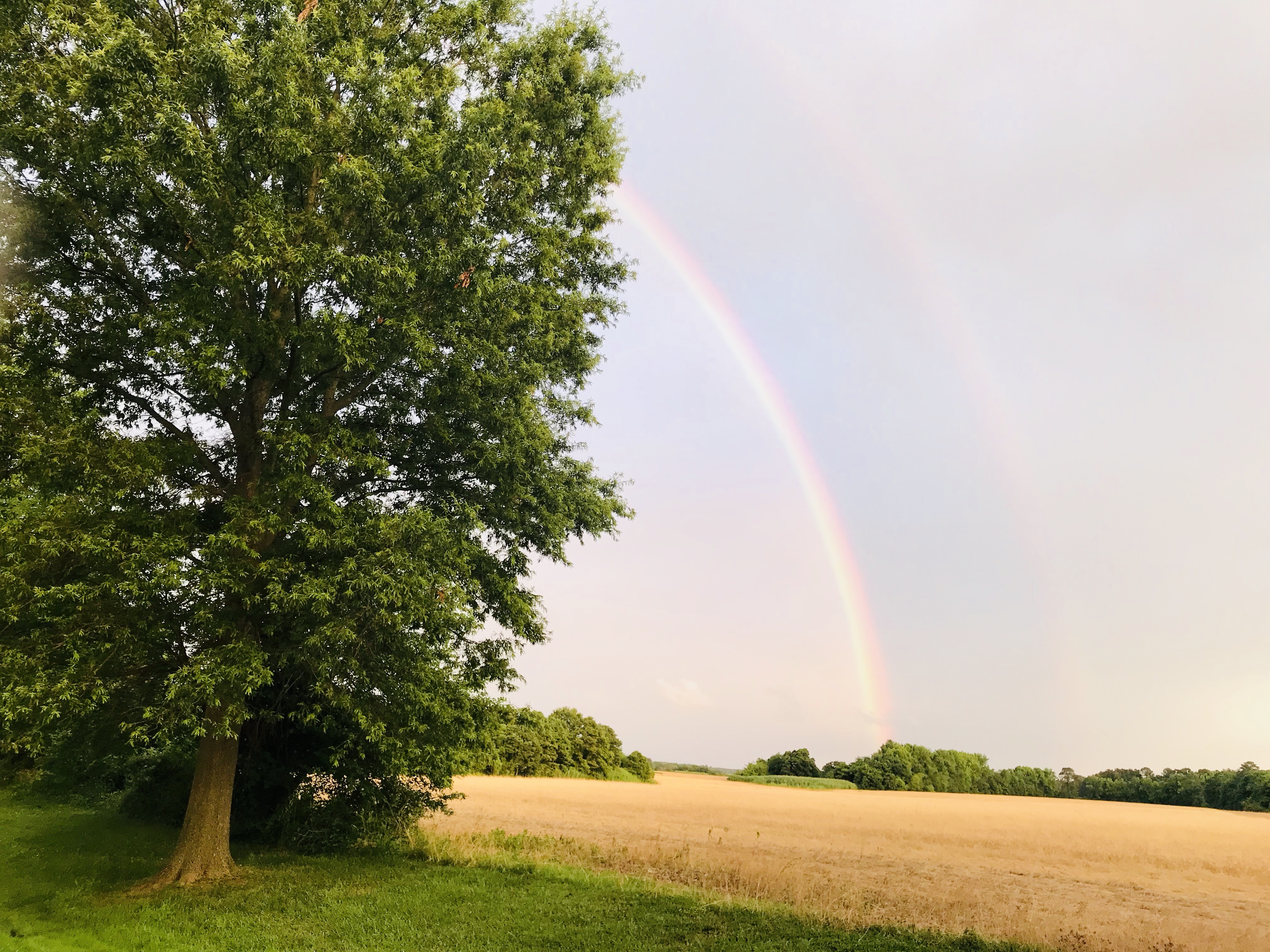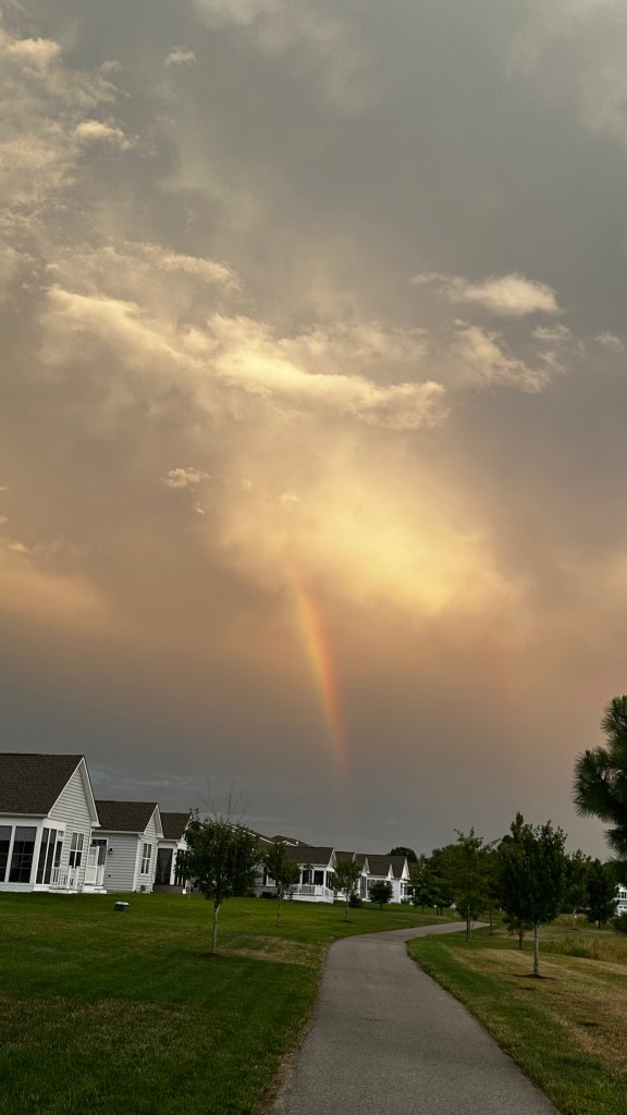 Spotted this rainbow on our afternoon walk. Not sure where it was raining