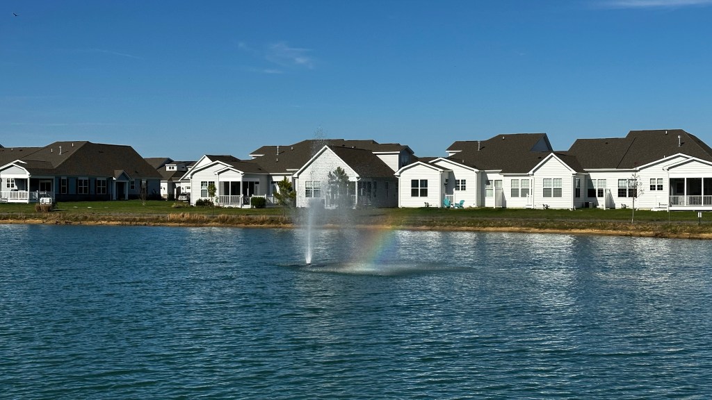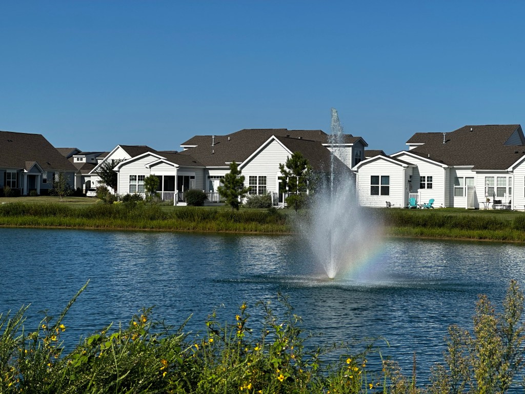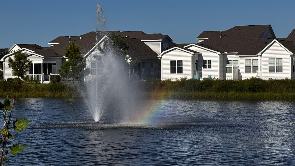 A beautiful day a little rainbow by the fountain. No clouds and very little colour at sunset tonight