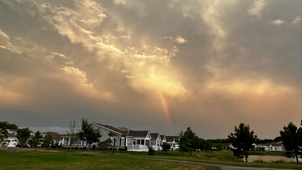 Went outside to take my evening sunset photo. Got a couple of good shots and then started walking back to house and spotted the rainbow. Had a hard time deciding which one I liked the best