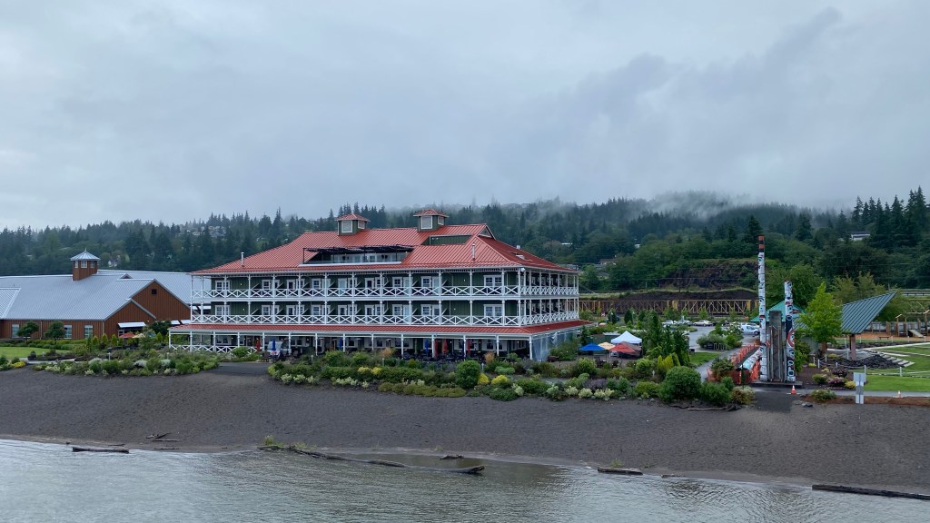 View from our ship of hotel and Interpretive Center in Kalama, Washington