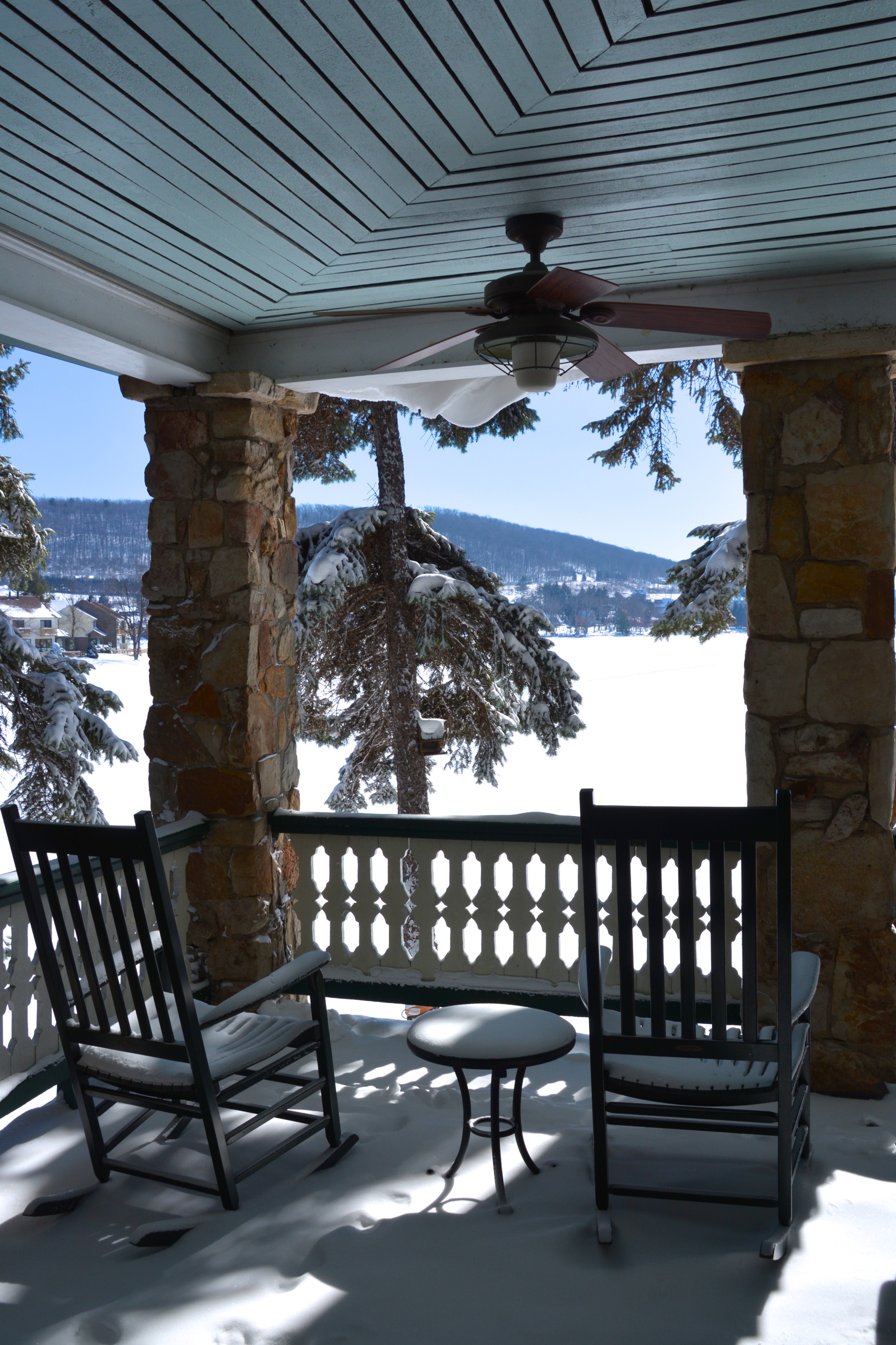 Decided to take a few days off and go to Deep Creek Lake. This is the porch of the Lakepointe Inn – our favorite bed and breakfast. The porch overlooks the lake. A little damp and chilly this afternoon but its supposed to be in the high 70’s tomorrow so will definitely chill out on the porch with a good book