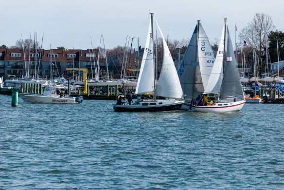We were in Annapolis running errands and when we decided to head for home we heard about a big backup on the Bay Bridge so we decided to stop at the Naval Academy to take some pictures. We lucked out as there were lots of sailboats on the bay
