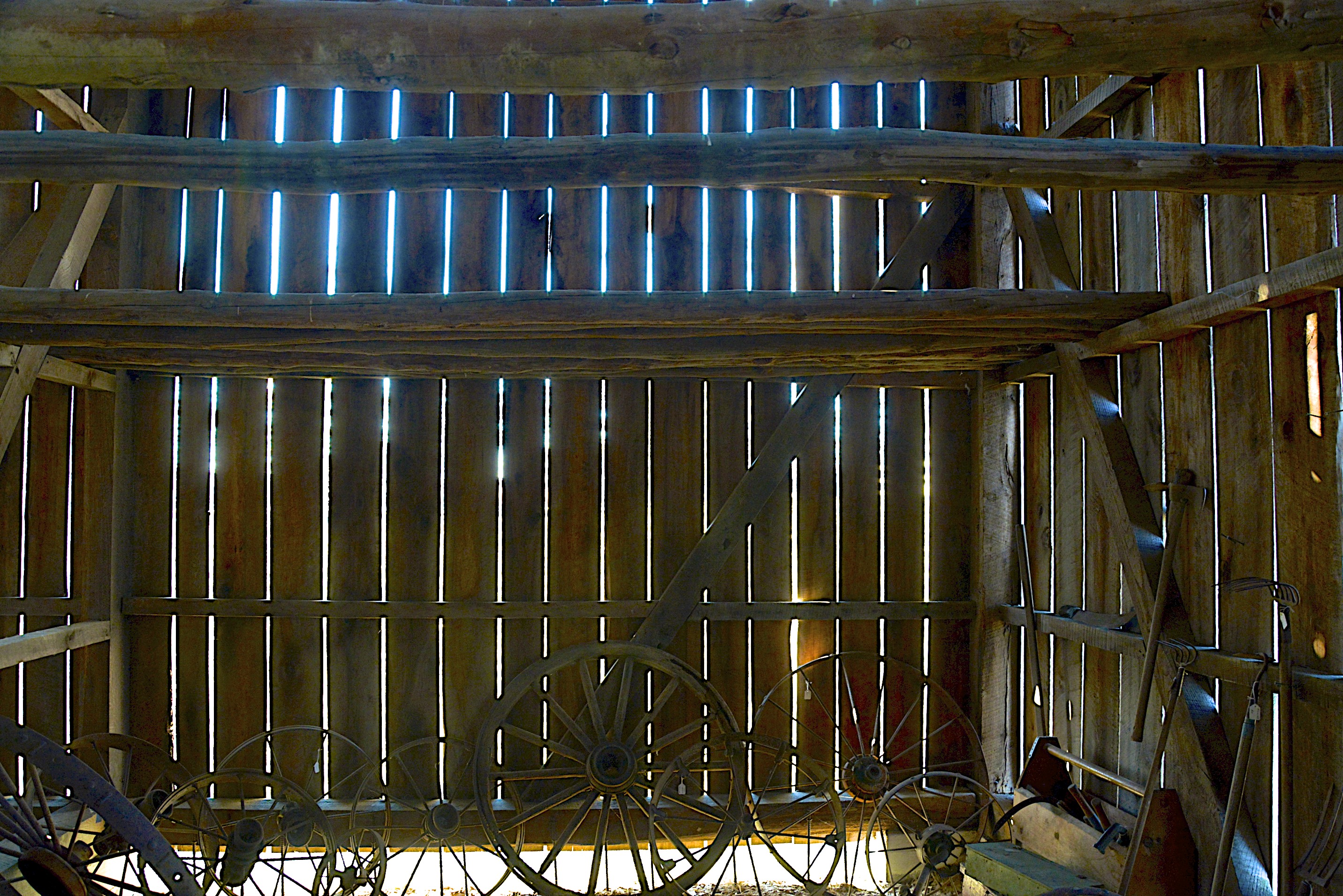 The old tobacco barn was moved from Gambrills. The only part of the barn that is original is the interior framing. It was really interesting to see the old tools If you look closely you can see all the different size wagon wheels.