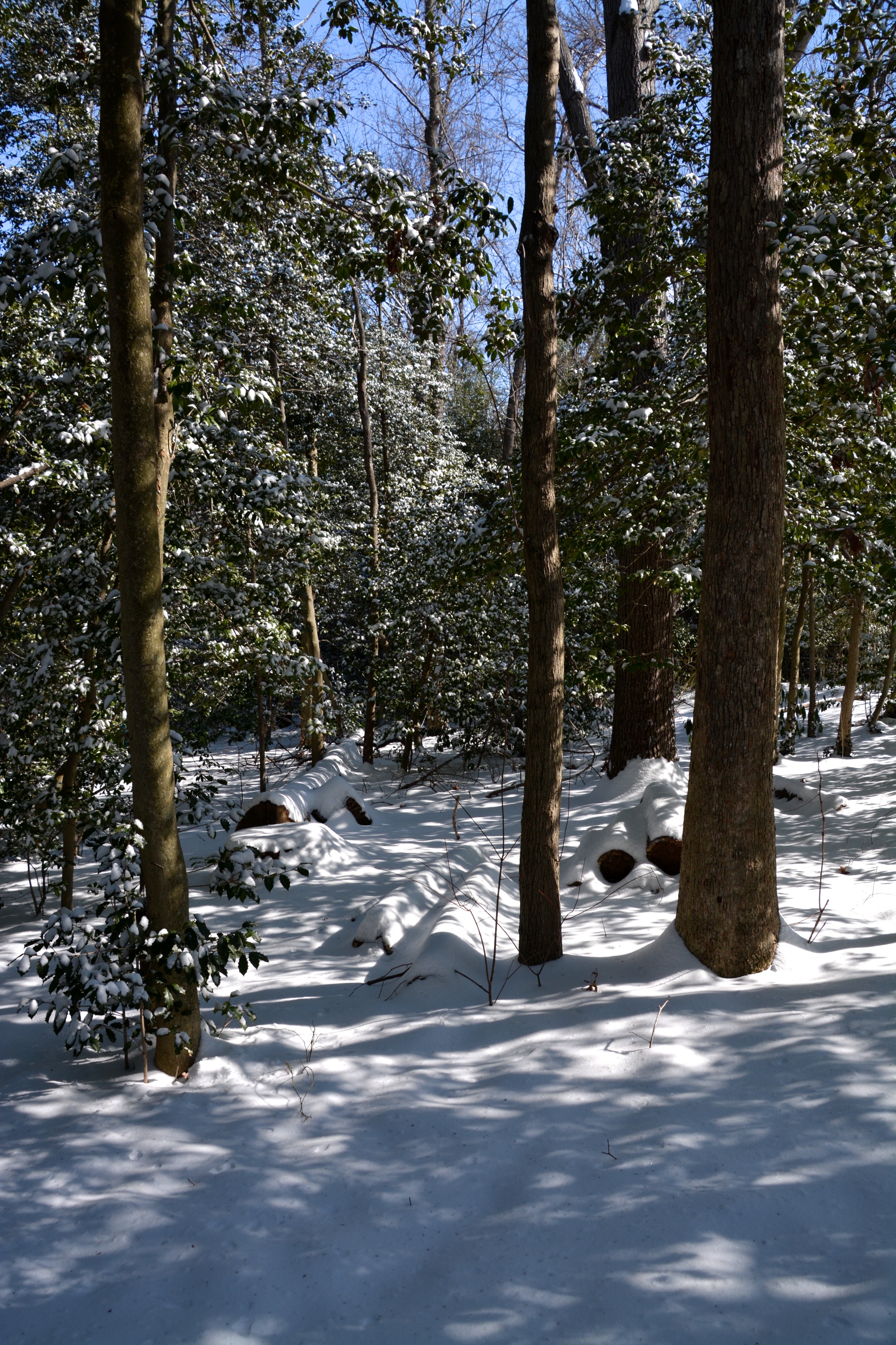 It’s 70 degrees out and the sun is shining. We headed to Kinder Park. The Pond looks like it’s frozen but that’s not ice – it’s just scum. Like the shadows
