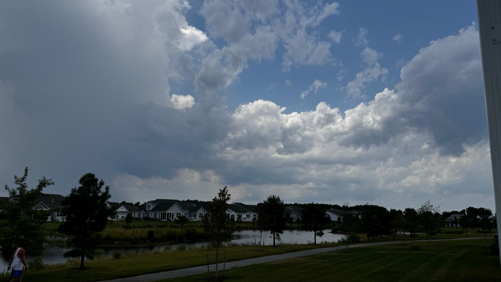 Storm clouds. It’s 90 degrees and feels like 102. Wish we were still in Vermont