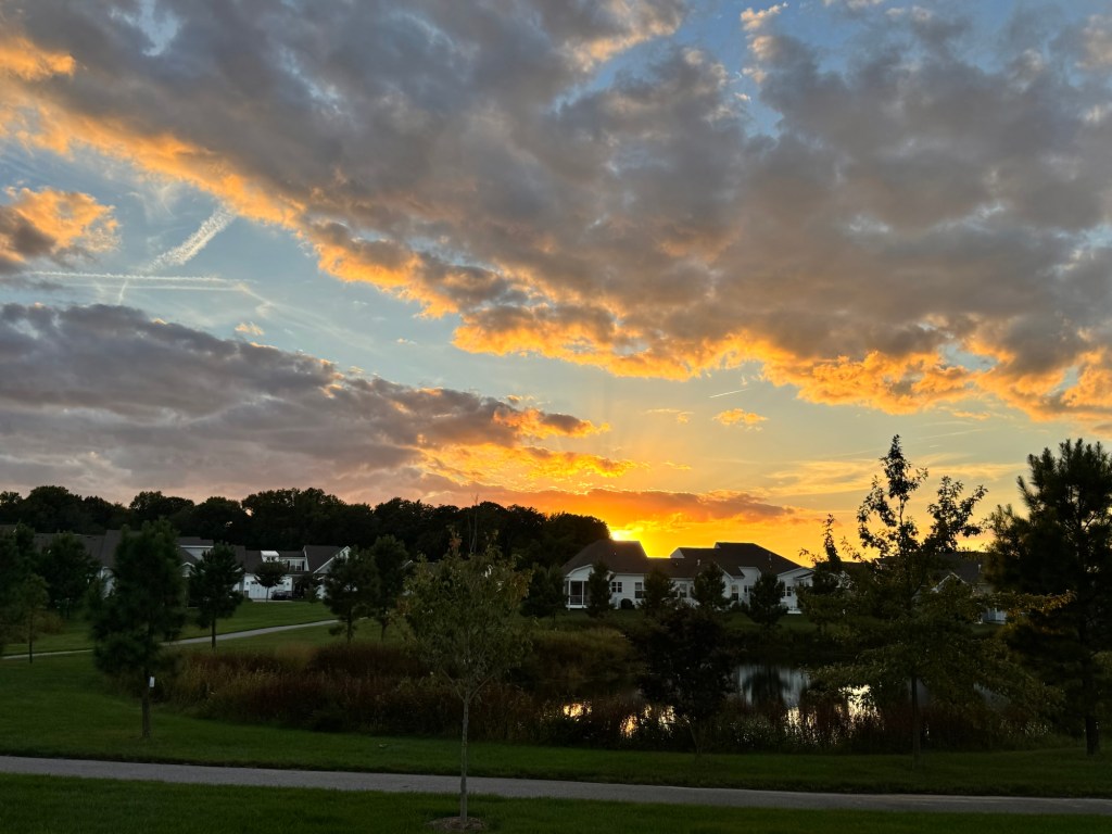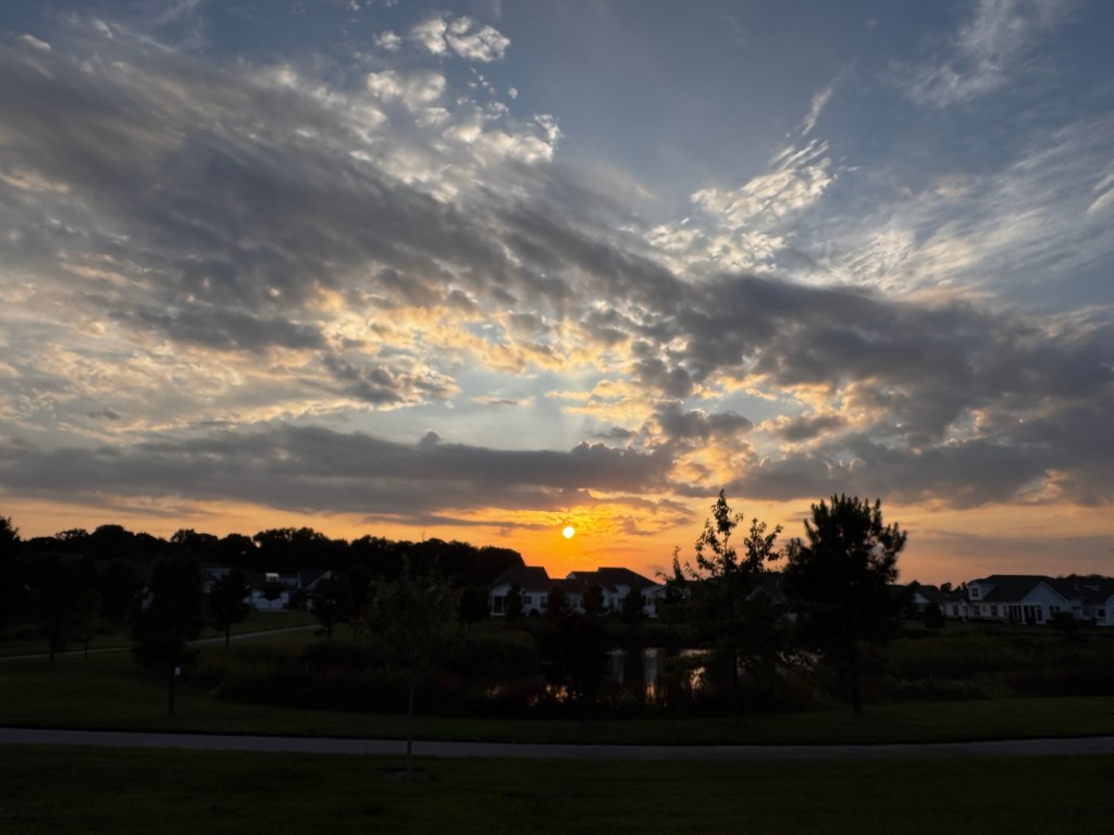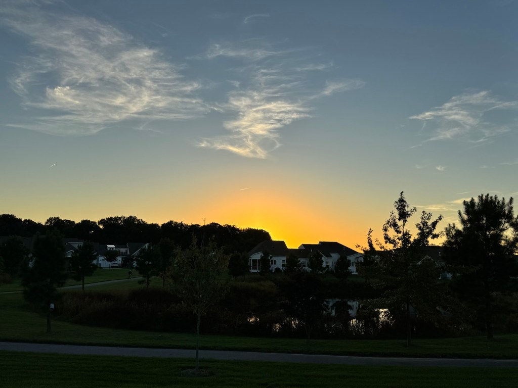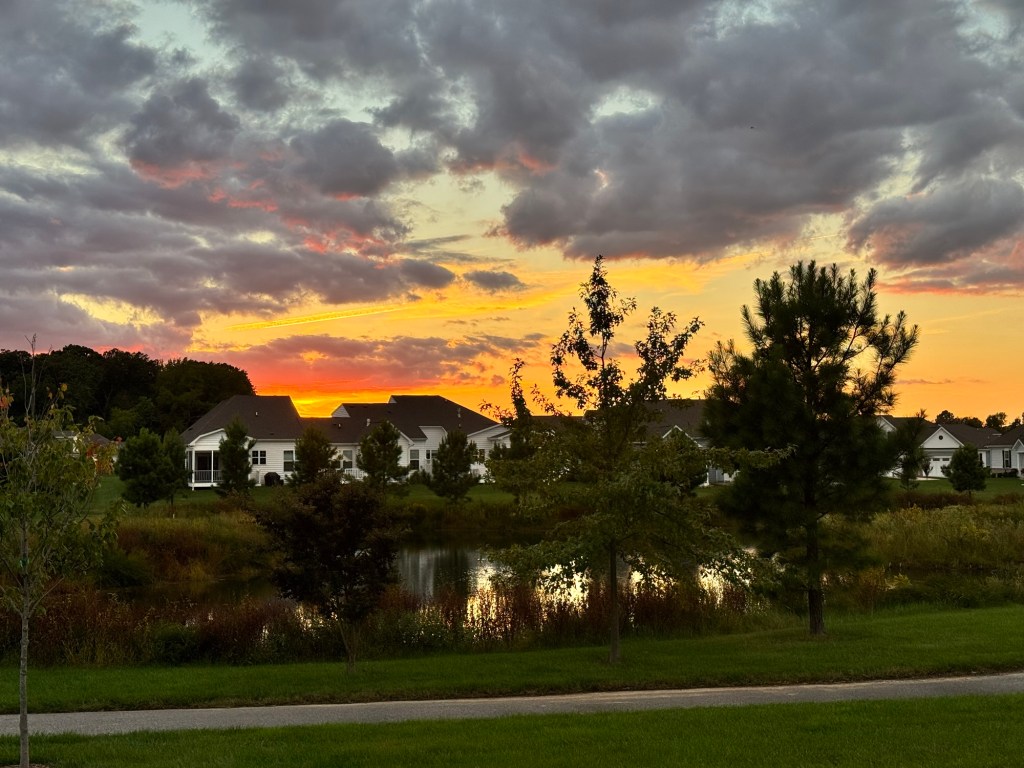 Tonight’s sky. If you enlarge photo you will notice a white spot on upper left. It’s the moon. When I go outside to take a photo I usually turn to the right but there was more color to the left and then I spotted the moon