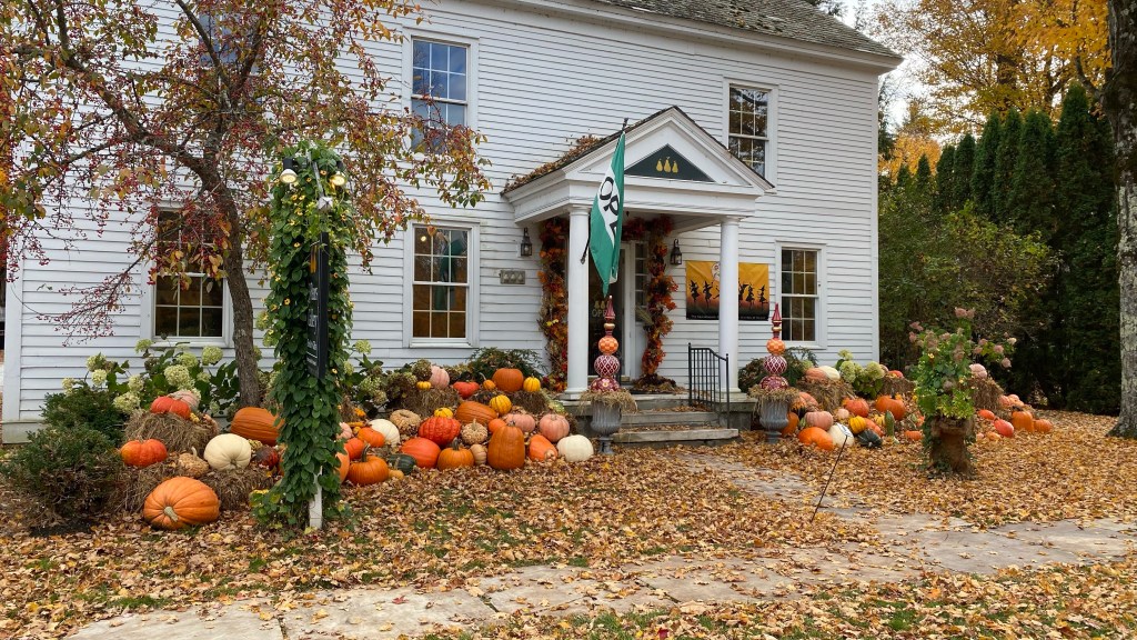 Stopped at Dorset Union Store to pick up sandwiches for dinner and the Three Pears Gallery is all decorated for fall lot more pumpkins that I remember from past years