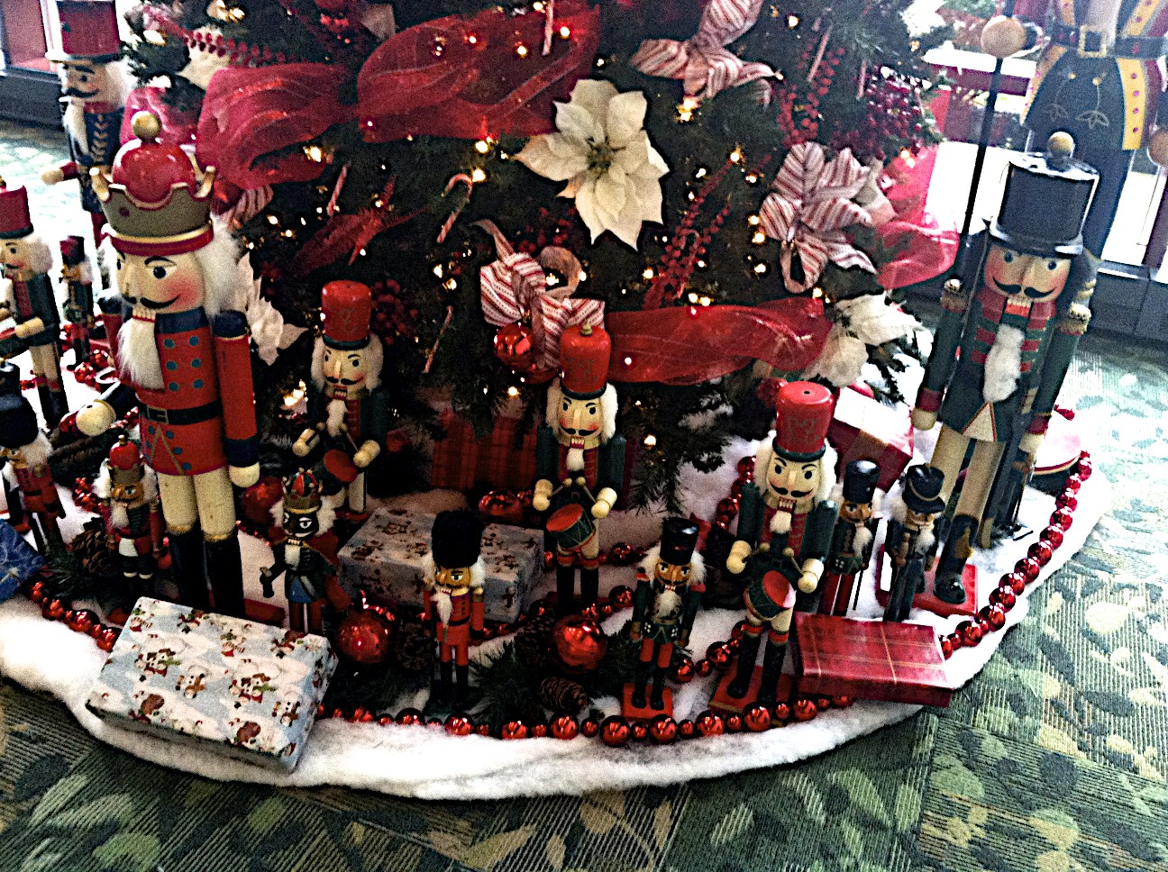 This Christmas tree is in one of the buildings we manage. I have never seen a tree surrounded by nutcrackers. The nutcrackers were in all different sizes. You can just see part of the big ones in the background. I took these photos during lunch time with my IPhone but they didn’t turn out that great. Will have to go back and take some photos when there aren’t so many people around. Need to get a shot of the whole tree