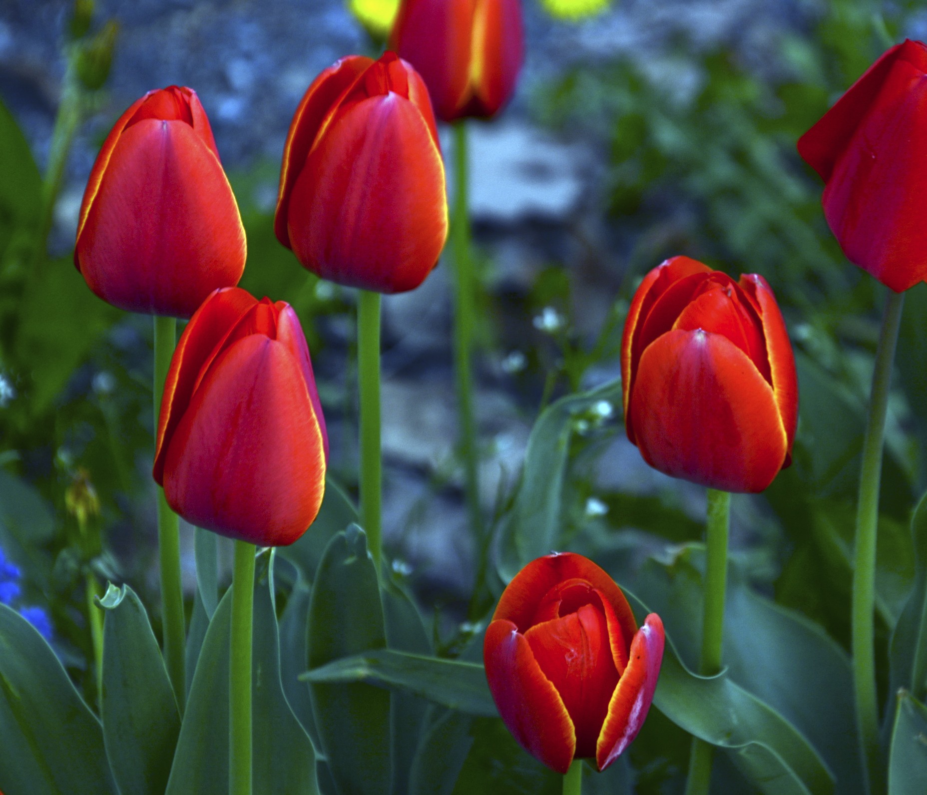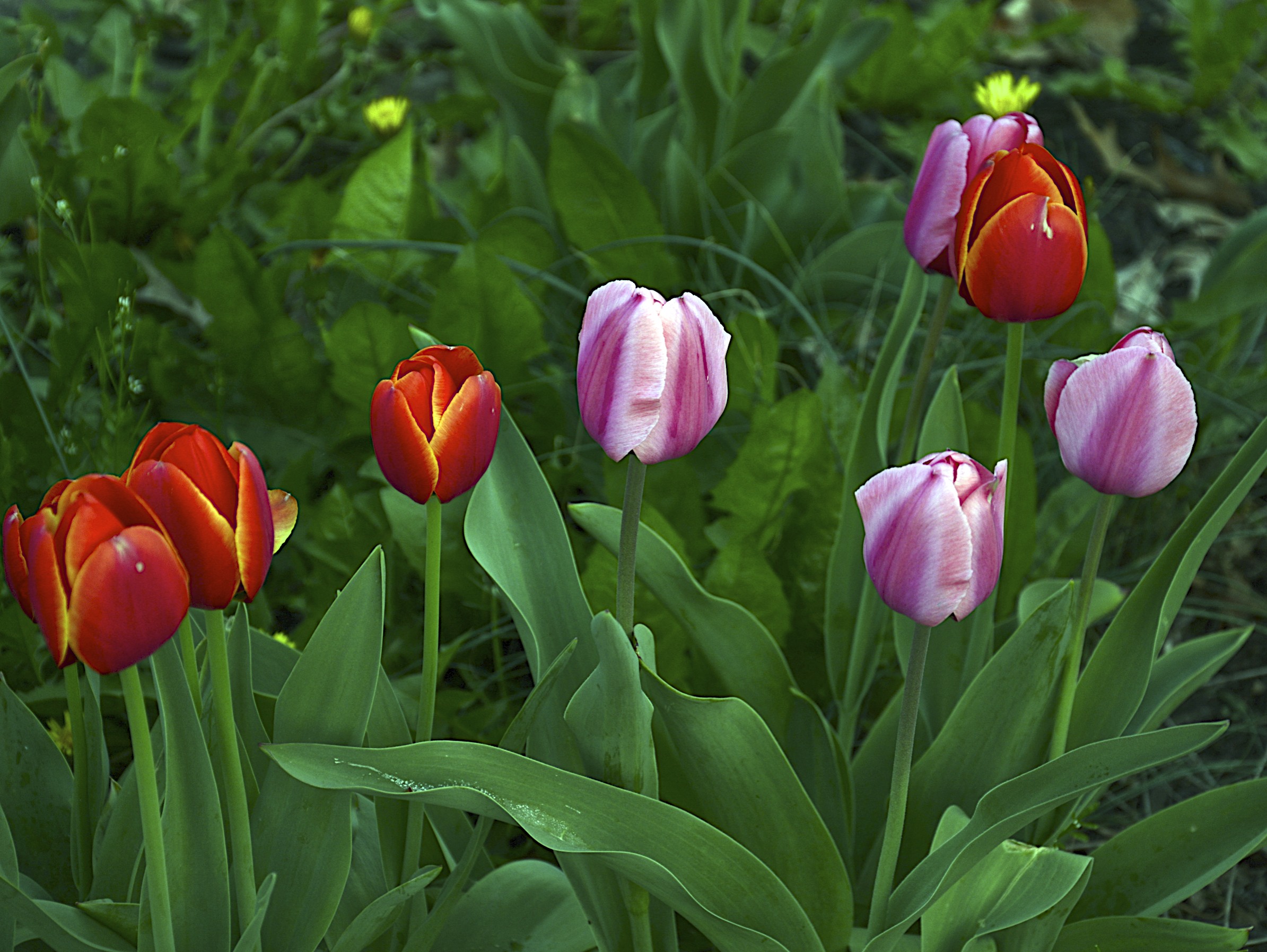 Posted on April 16, 2013 by lynmicphoto 2 Lin and Michael’s Photos Went for a walk after dinner and spotted these tulips in a neighbors yard. There were several groups of tulips – this grouping had all of the same color